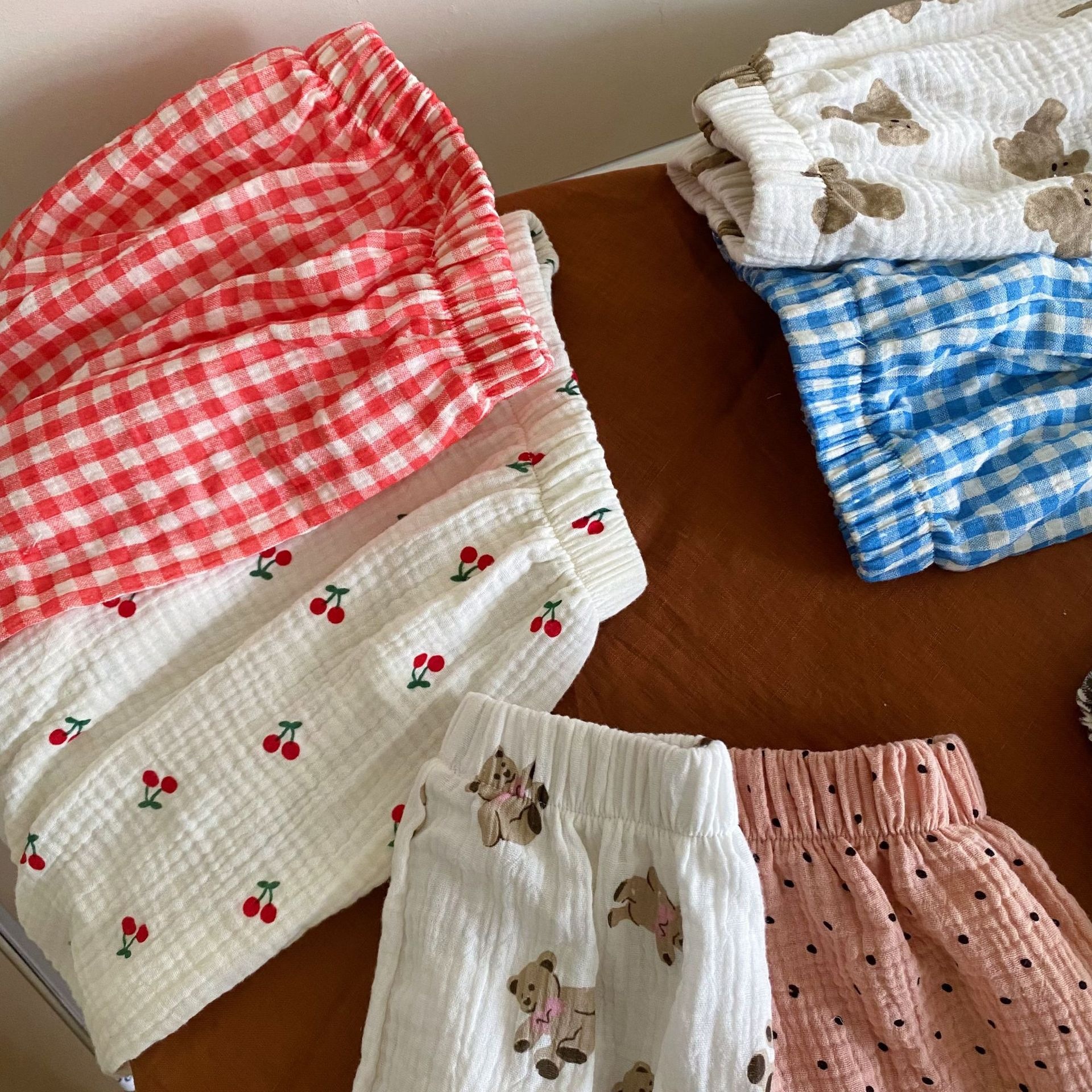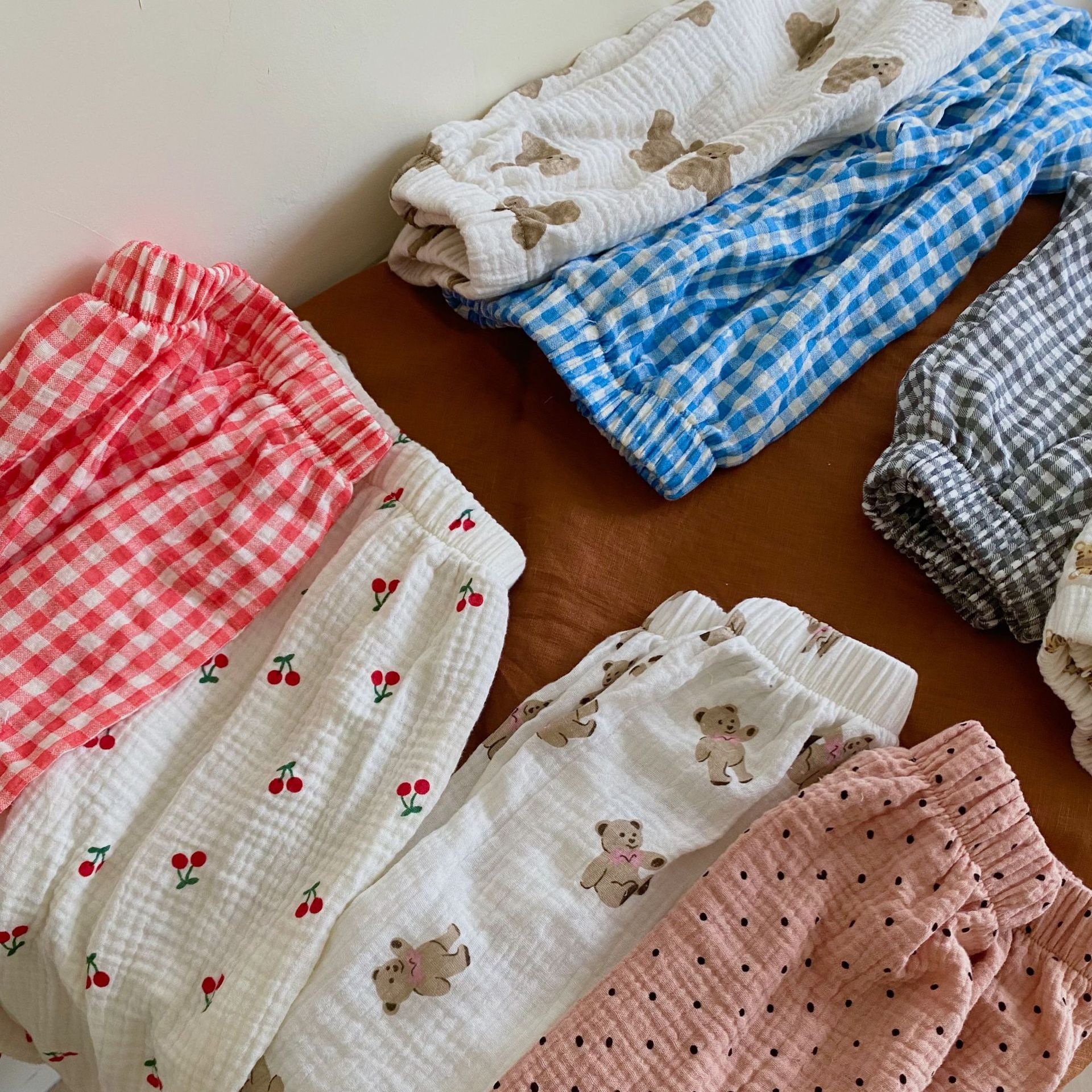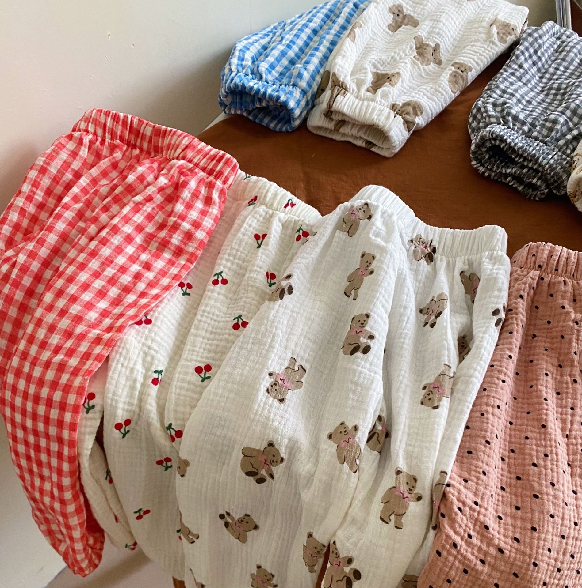 아동용 모기 방지 바지 여름용 남녀공용 이중 면 거즈 만화 곰 캐주얼 바지 레깅스 인스 스타일스토어 가기