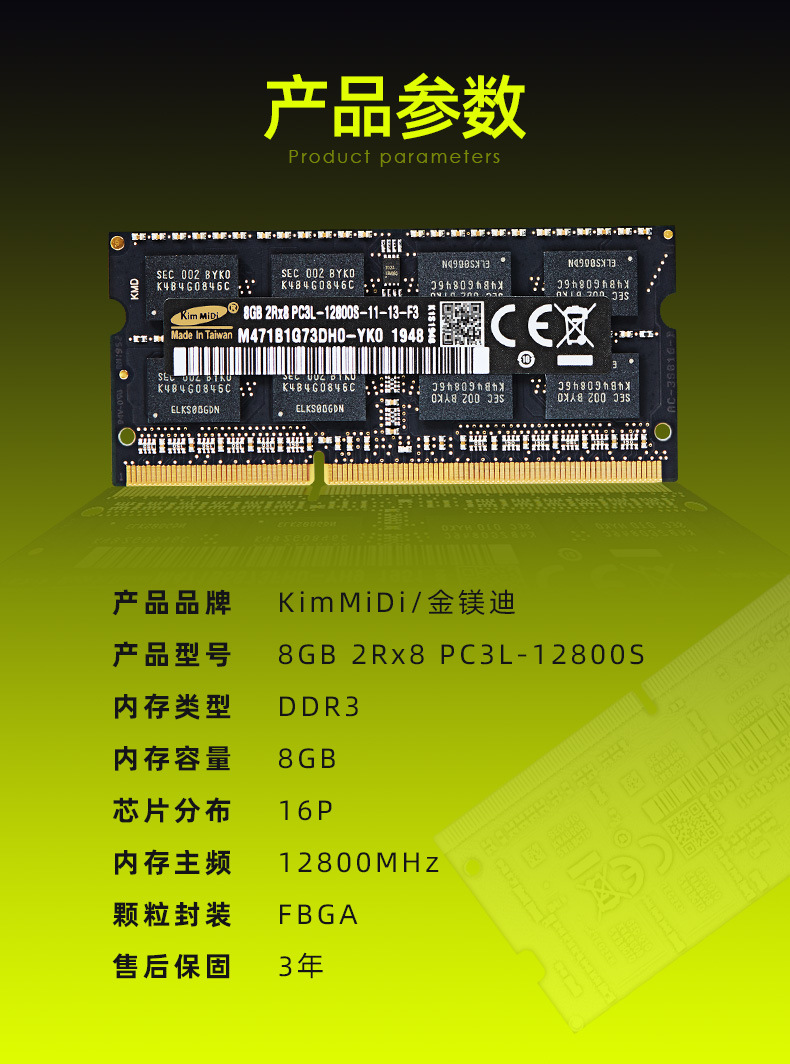 DDR3L 8G 1600 은 노트북 통합 산업 제어 교육 터치 광고 POS 기계 등에 적합합니다.
