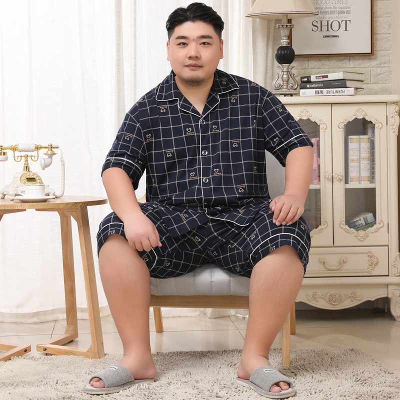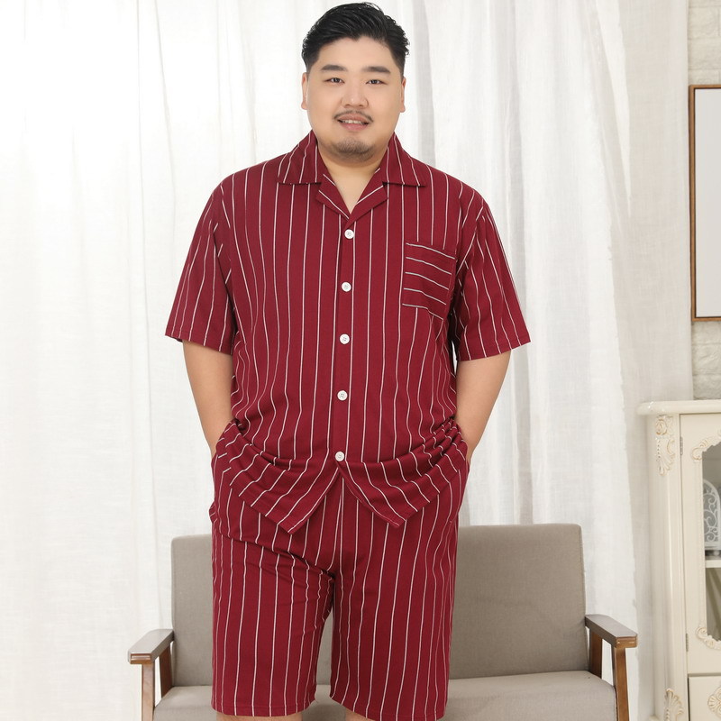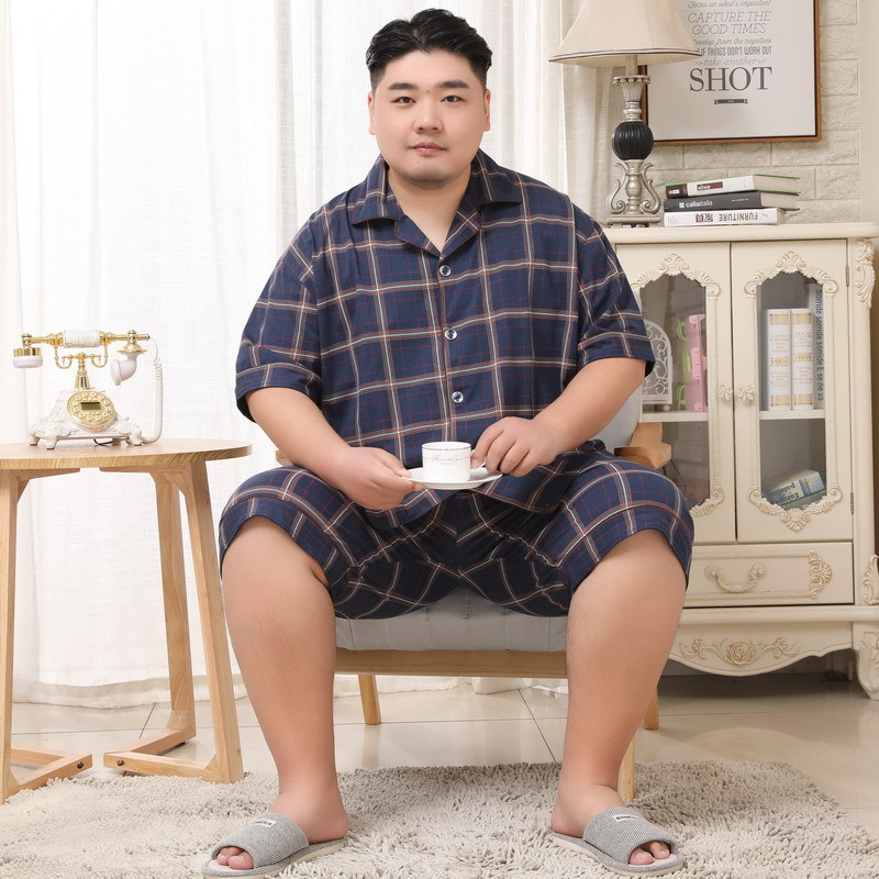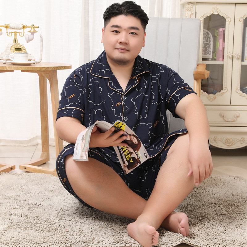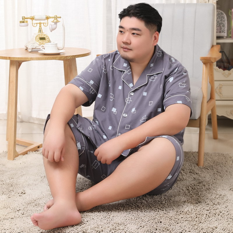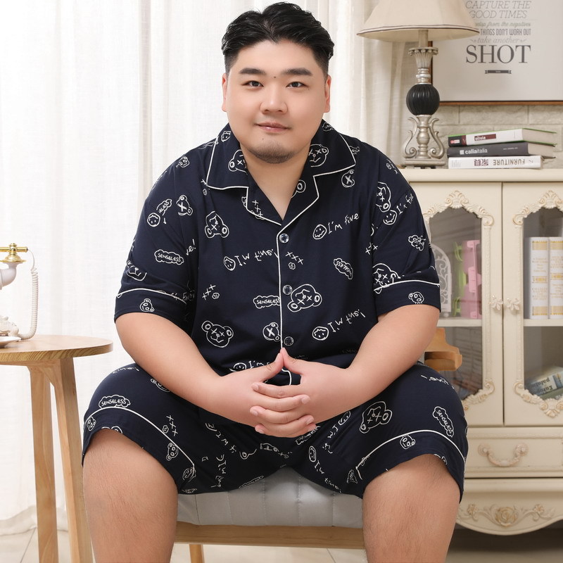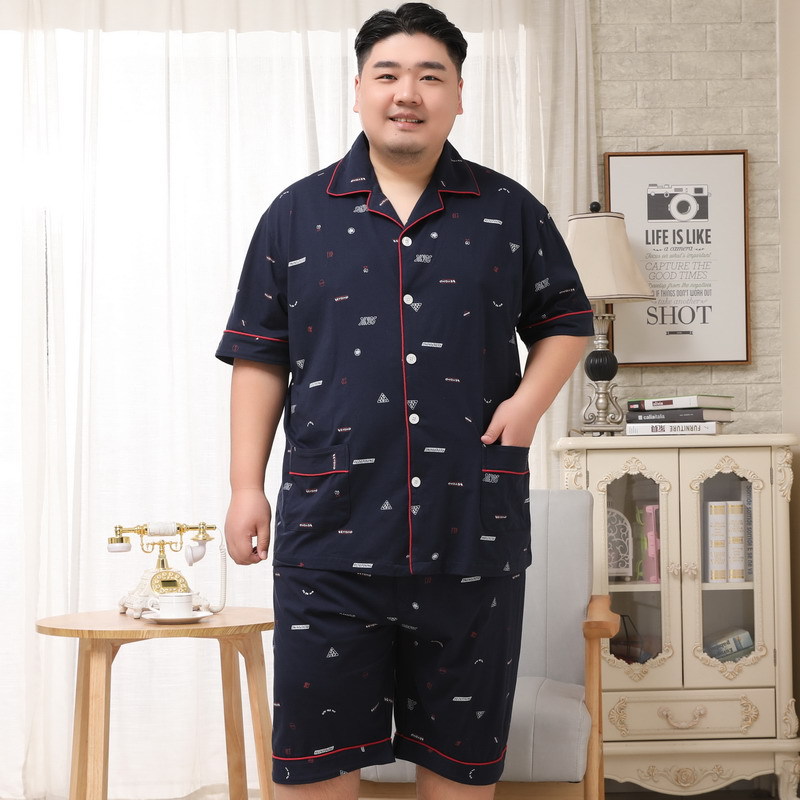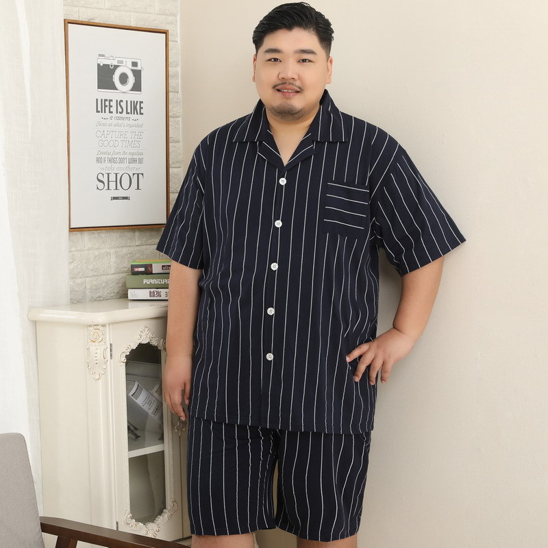 Meiji Yun 새로운 남자의 여름 면 옷깃 반팔 반바지 잠옷 초대형 뚱뚱한 남자 가정 옷 세트