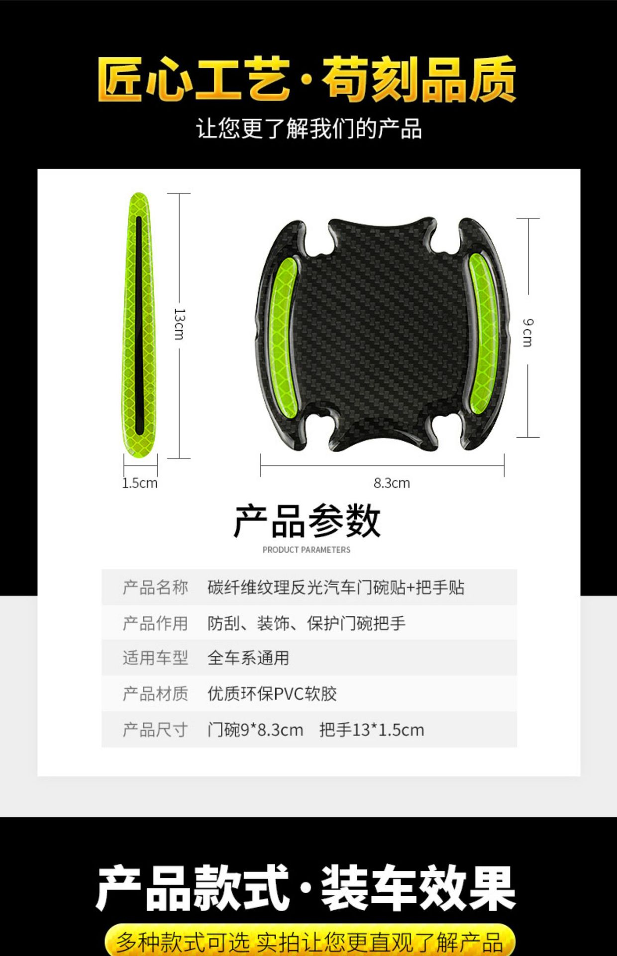 자동차 도어 반사 스티커 스크래치 방지 탄소 섬유 물방울 방지 스티커 도어 그릇 보호 핸들 핸들 스크래치 방지 유니버설