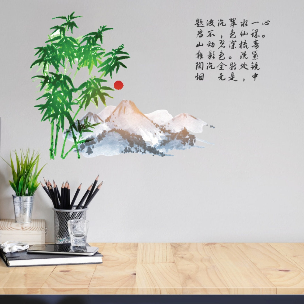 Yiyao 중국 스타일 풍경 대나무 벽 스티커 거실 침실 복도 따뜻한 대나무 일몰 배경 벽 장식 방습 스티커스토어 가기