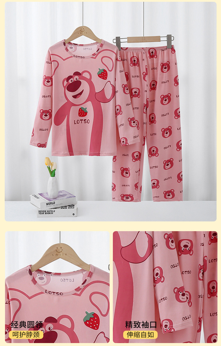 어린이 잠옷 봄과 가을 긴 소매 만화 귀여운 공주 스타일 소녀 큰 어린이 가정복 얇은 세트 도매스토어 가기