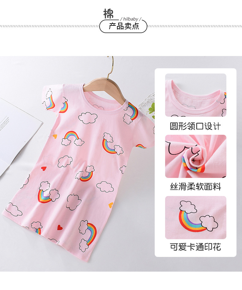 어린이 잠옷 여름용 면 얇은 반팔 잠옷 중소 어린이 여아 및 아기 가정복 반팔 티셔츠 공주 치마