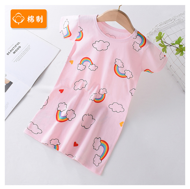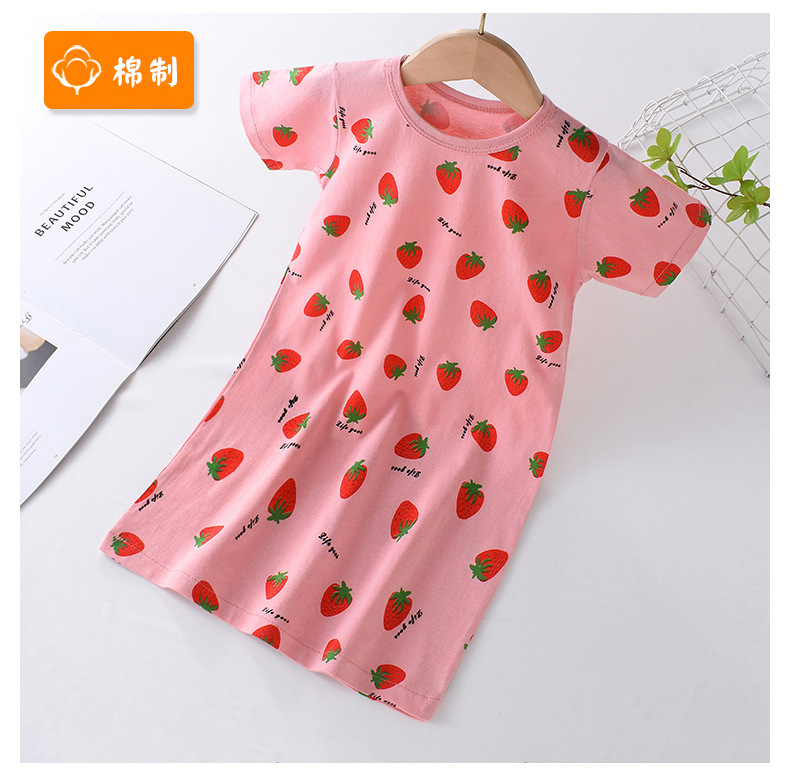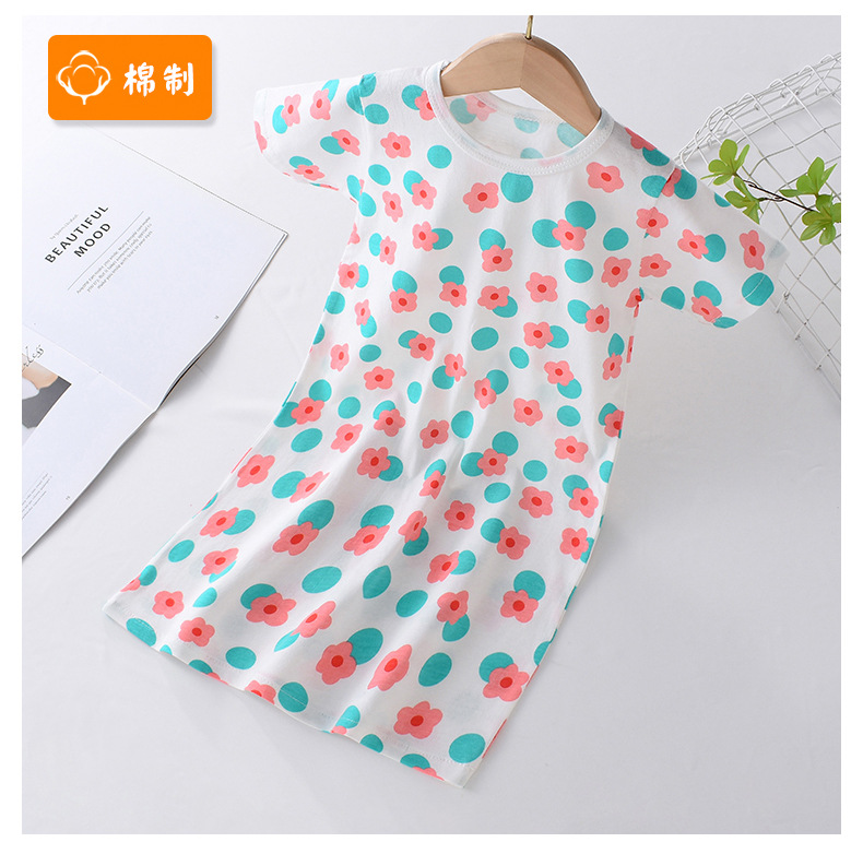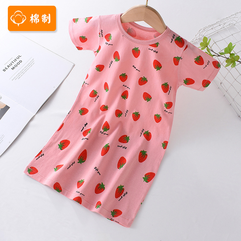 어린이 잠옷 여름용 면 얇은 반팔 잠옷 중소 어린이 여아 및 아기 가정복 반팔 티셔츠 공주 치마스토어 가기