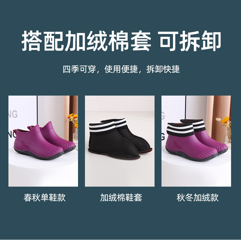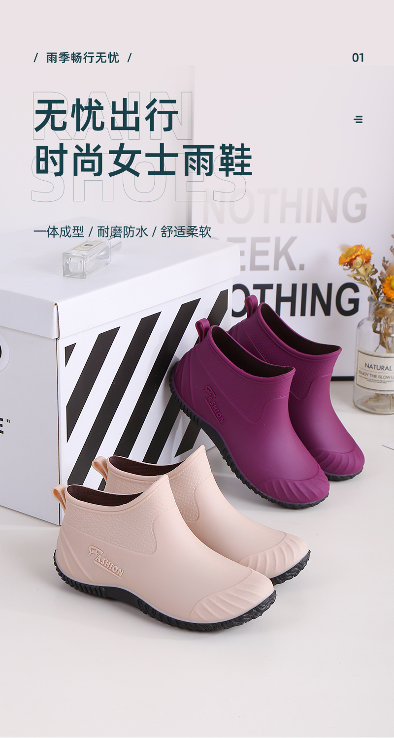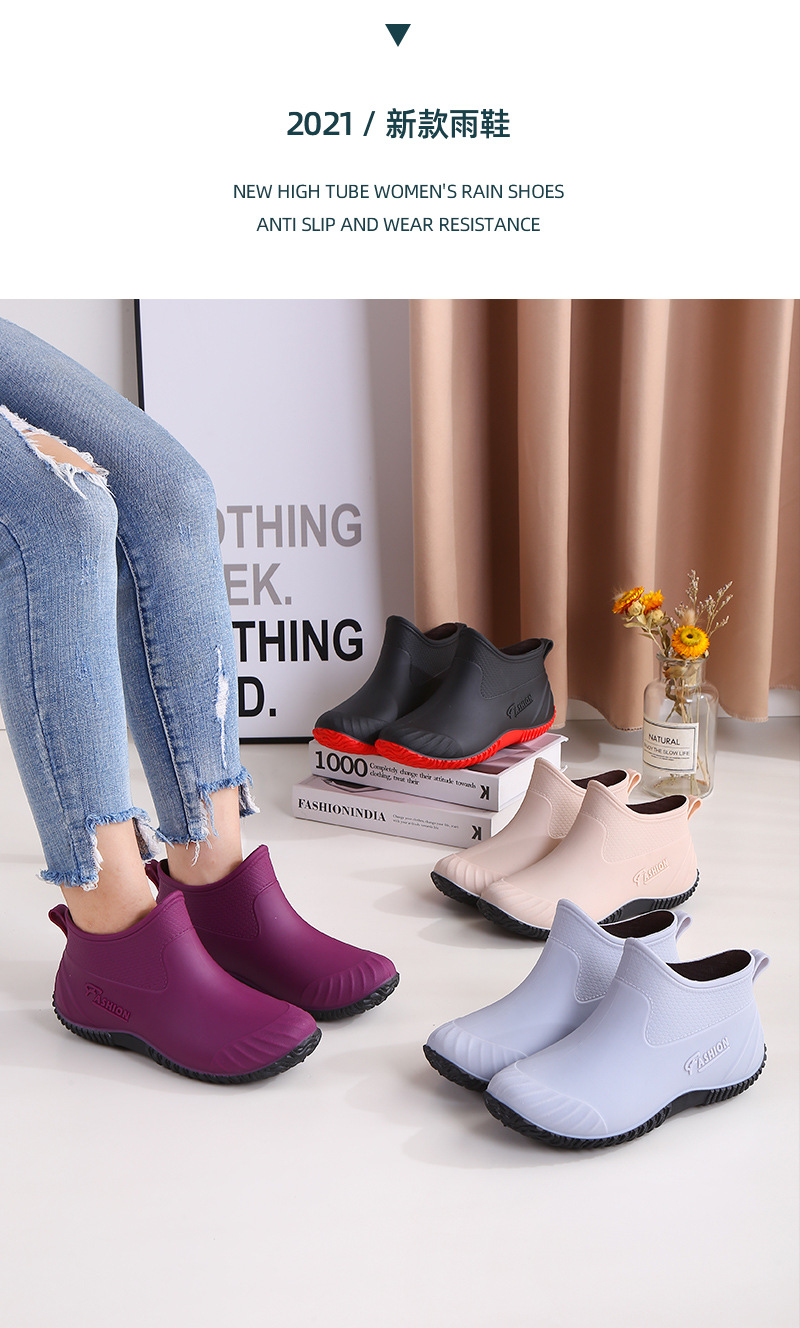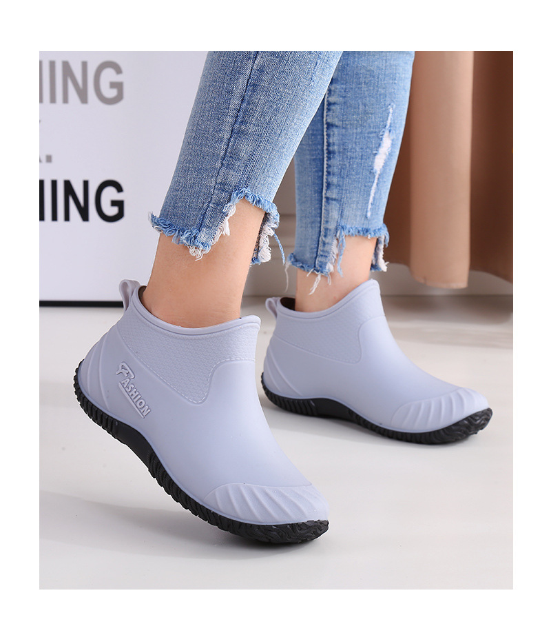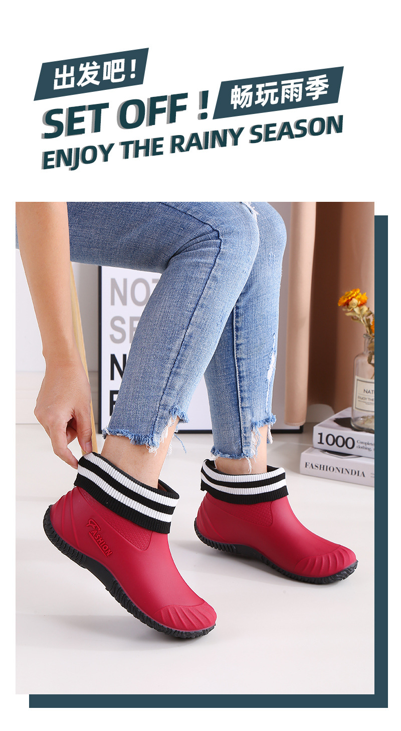 [싱글 천] 장화 여성용 일본 패션 아우터 올 매치 여성용 장화 짧은 미끄럼 방지 워터 부츠 방수 고무 신발스토어 가기