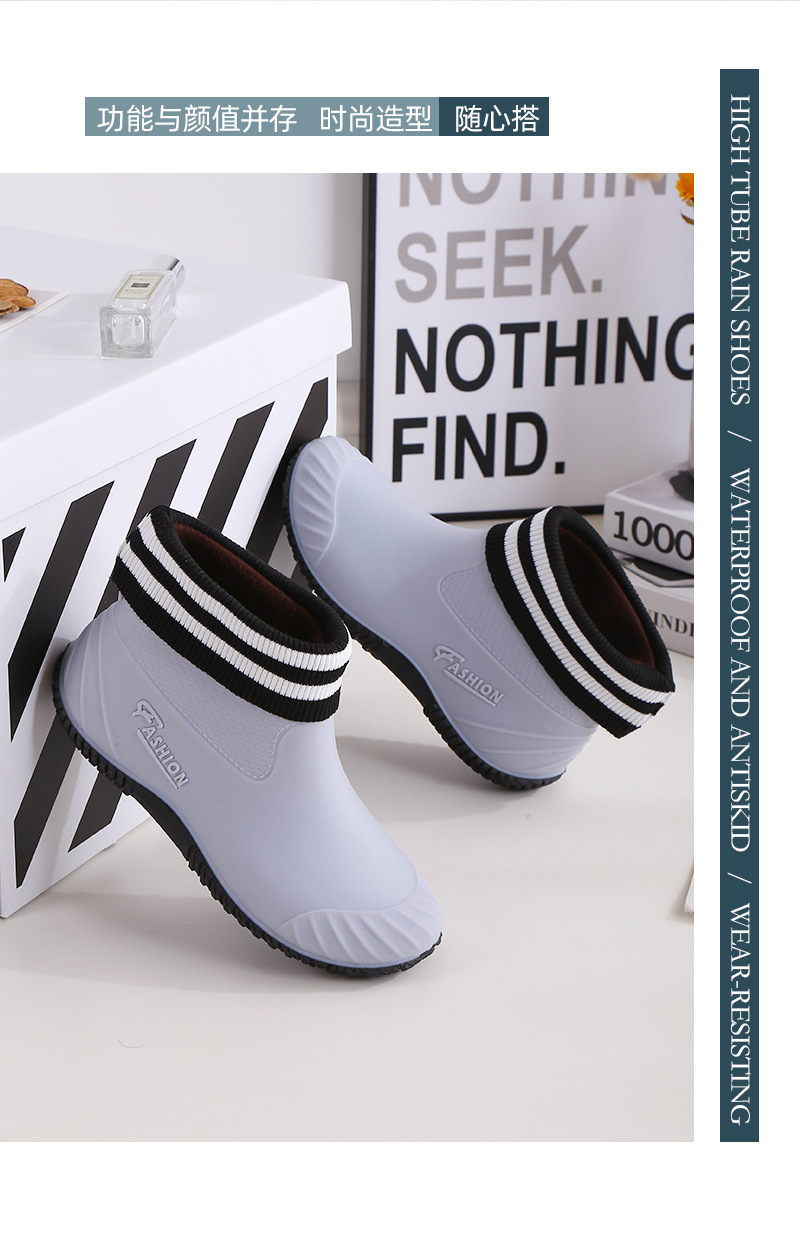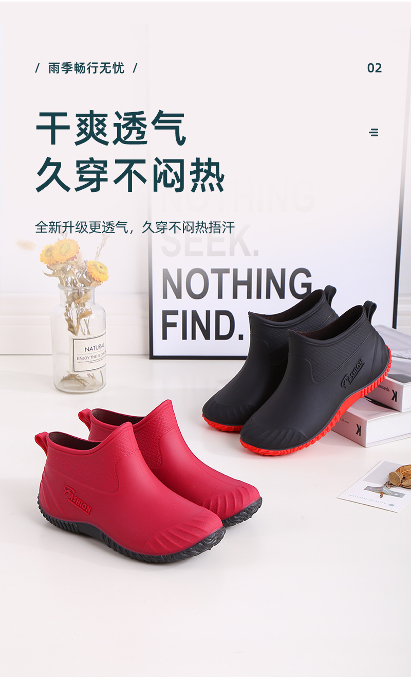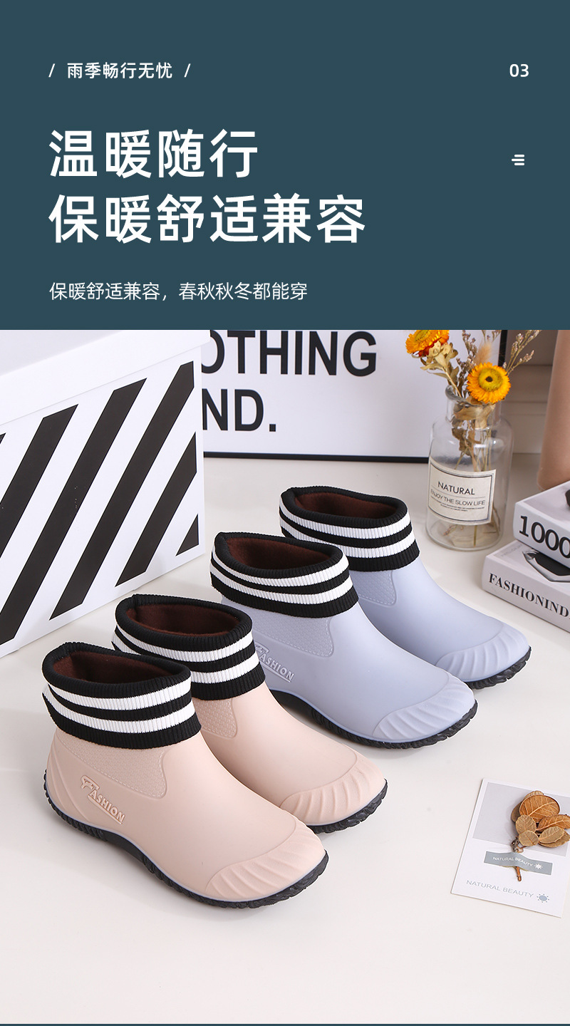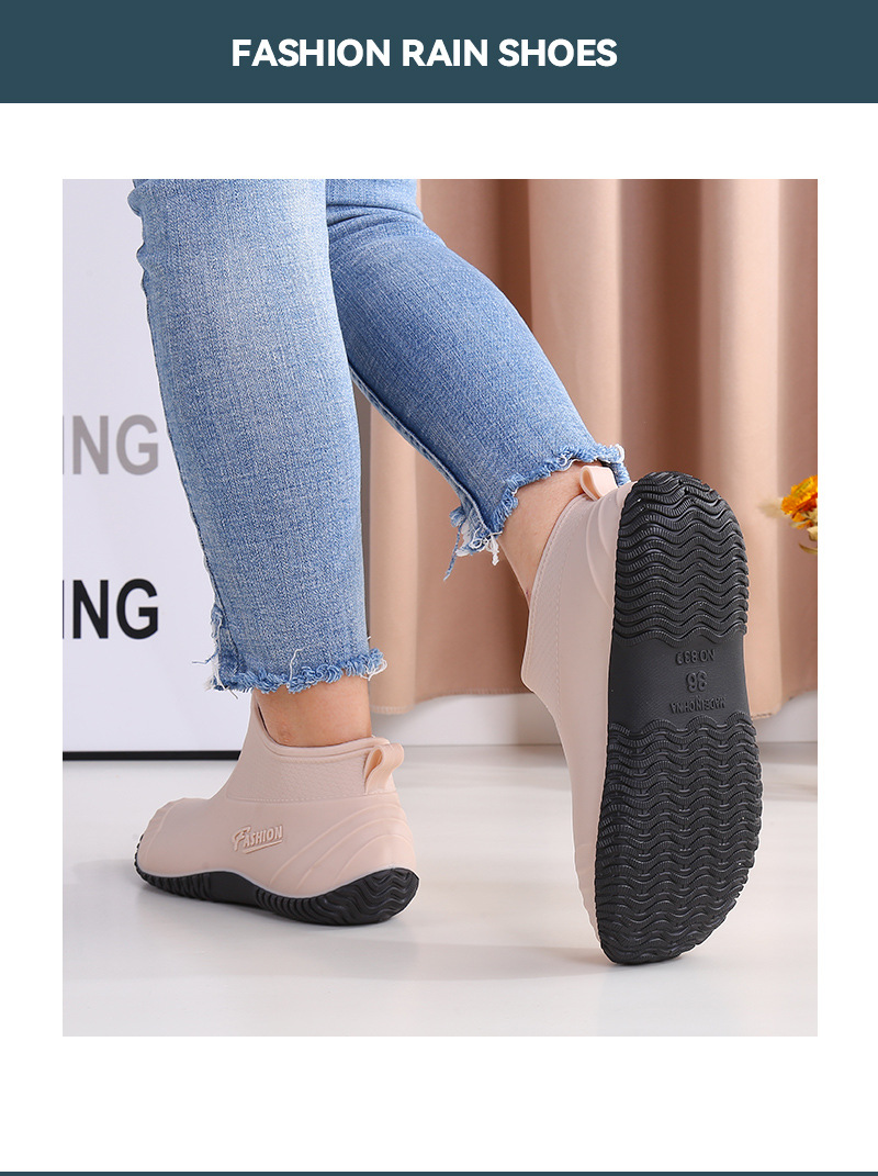 [싱글 천] 장화 여성용 일본 패션 아우터 올 매치 여성용 장화 짧은 미끄럼 방지 워터 부츠 방수 고무 신발