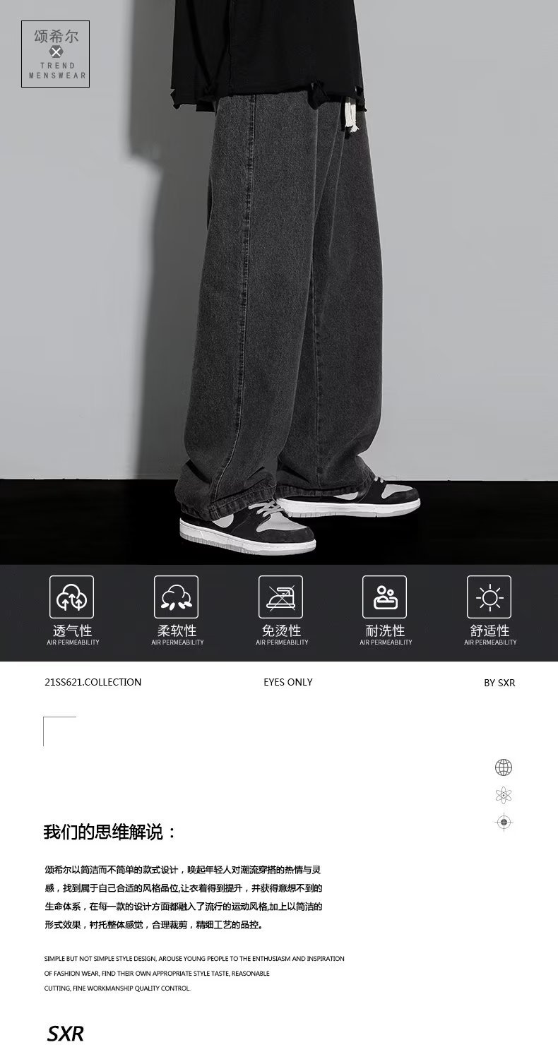 청바지 남성용 봄과 가을 느슨한 스트레이트 와이드 레그 팬츠 in 홍콩 스타일 트렌디 브랜드 십대를위한 모든 매치 캐주얼 롱 팬츠