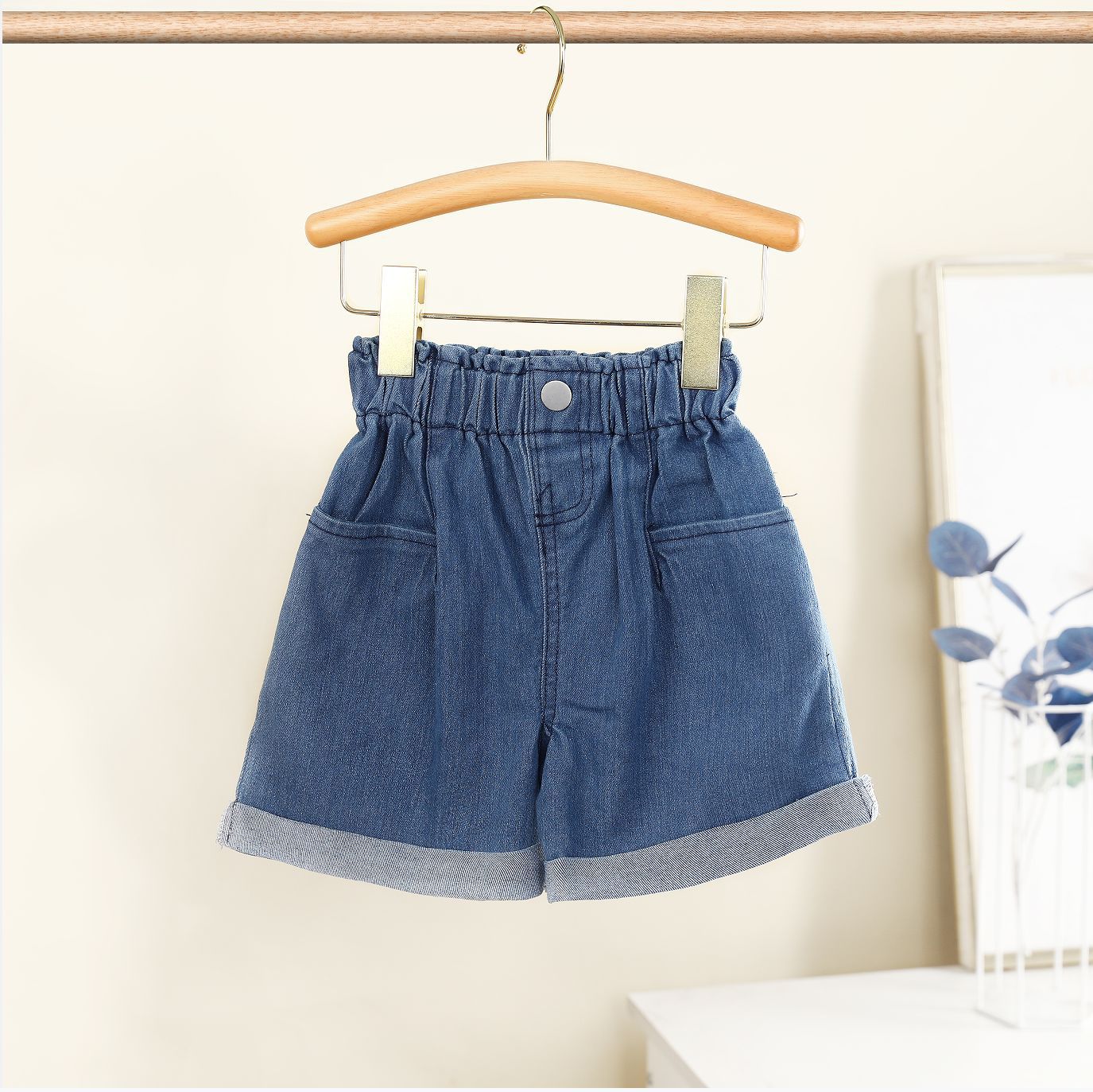 2025년 신상 여아 꽃무늬 셔츠 퍼프 소매 반팔 라펠 셔츠+데님 반바지 투피스 세트스토어 가기