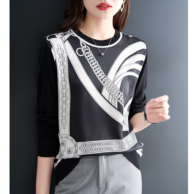 유럽 쉬폰 셔츠 여성용 봄 작은 셔츠 나이 감소 2023 새로운 스웨터 얇은 여성용 긴 소매 니트베이스 셔츠