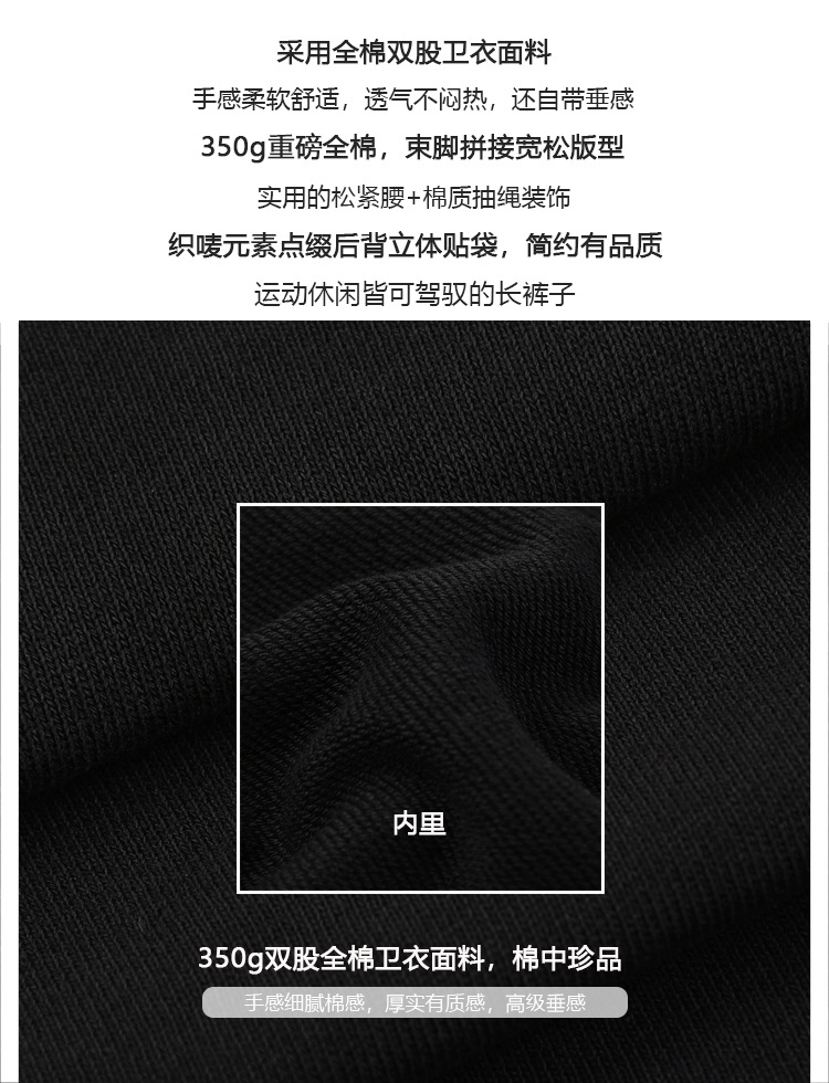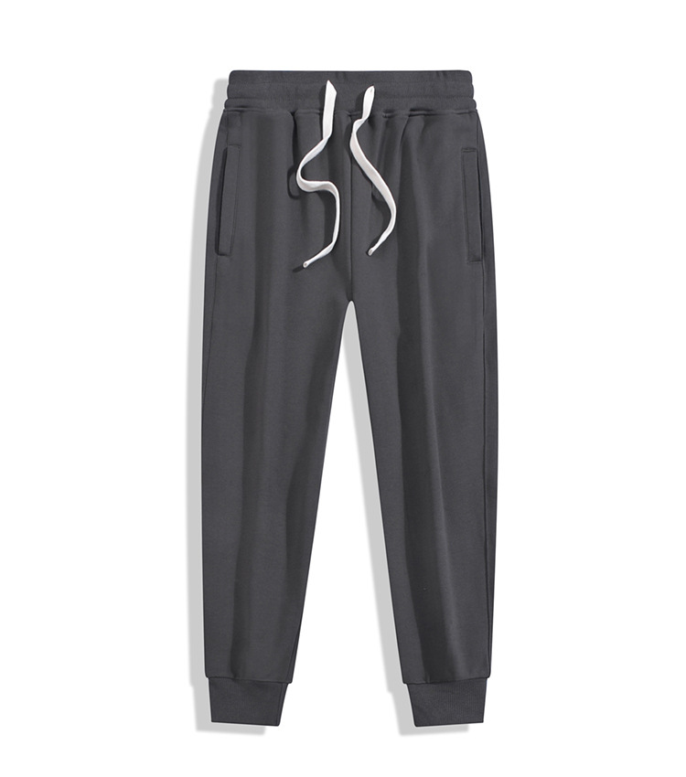 무거운 면 스포츠 바지 남성용 트렌디 한 단색 작은 발 코 운동복 그레이 지퍼 캐주얼 바지