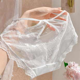 法式性感镂空蕾丝内裤女透明软网纱薄透气低腰包臀少女纯欲三角裤