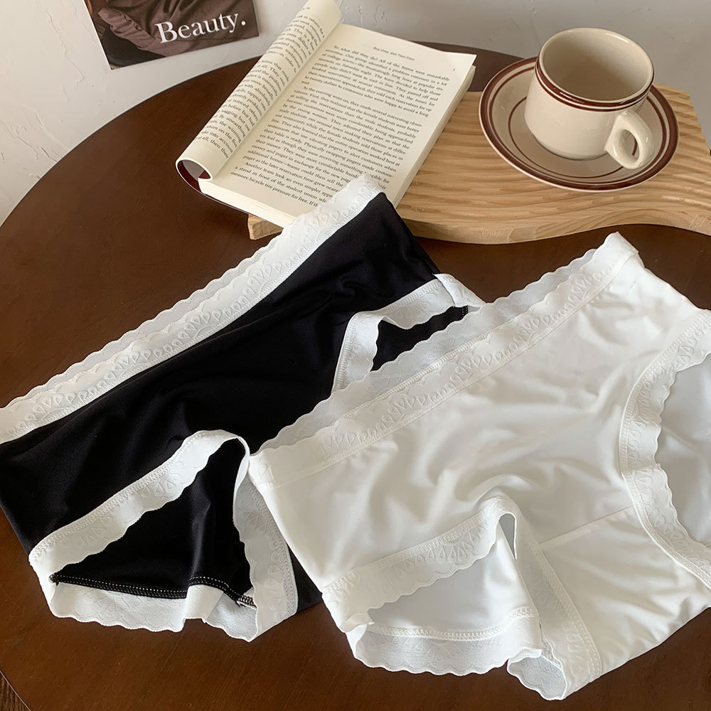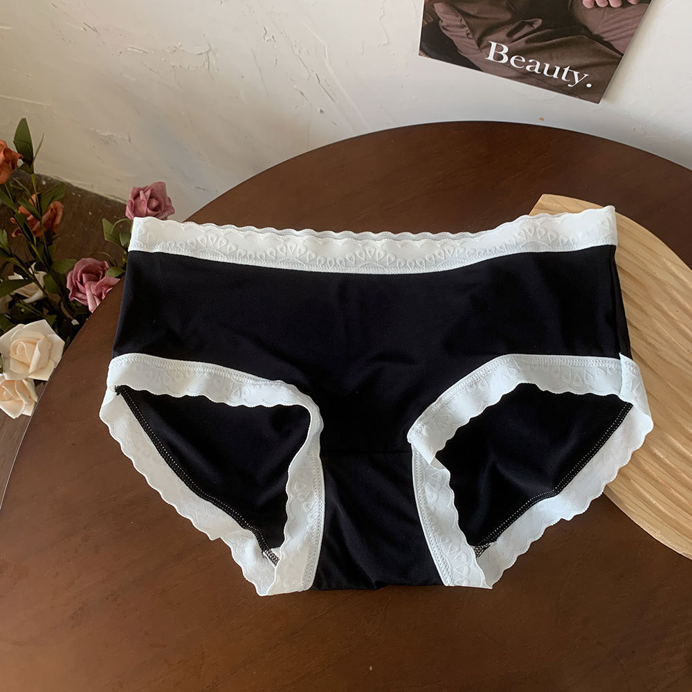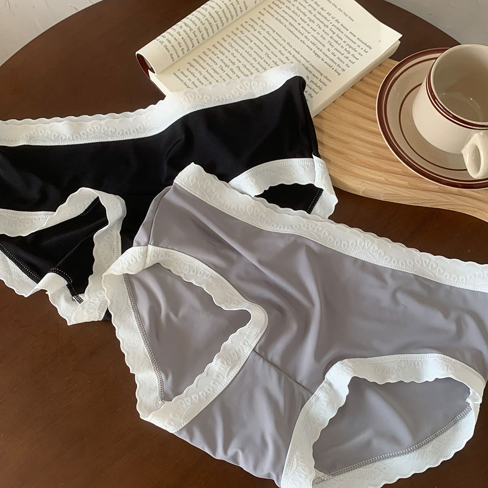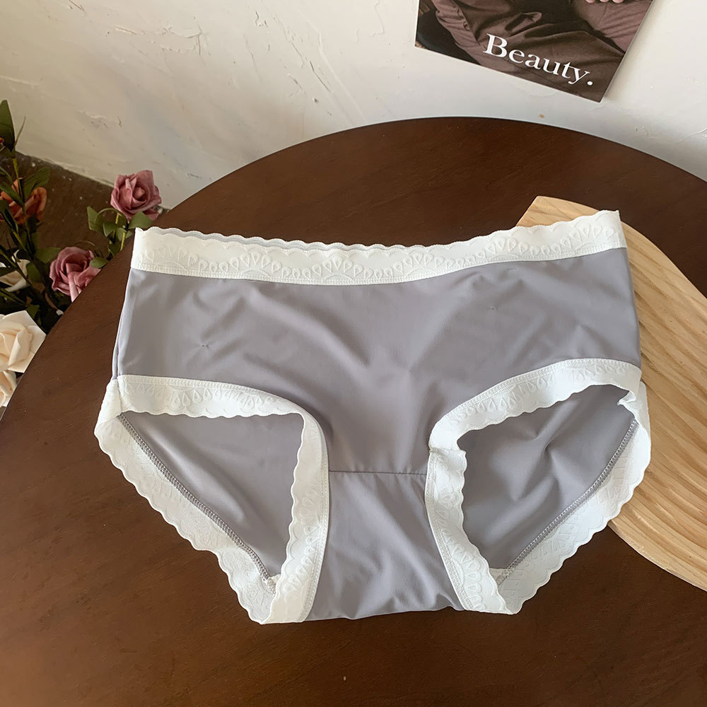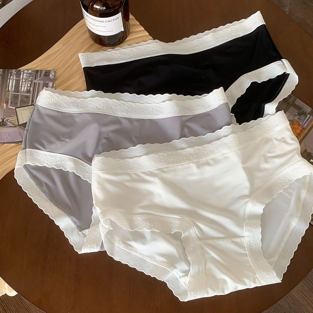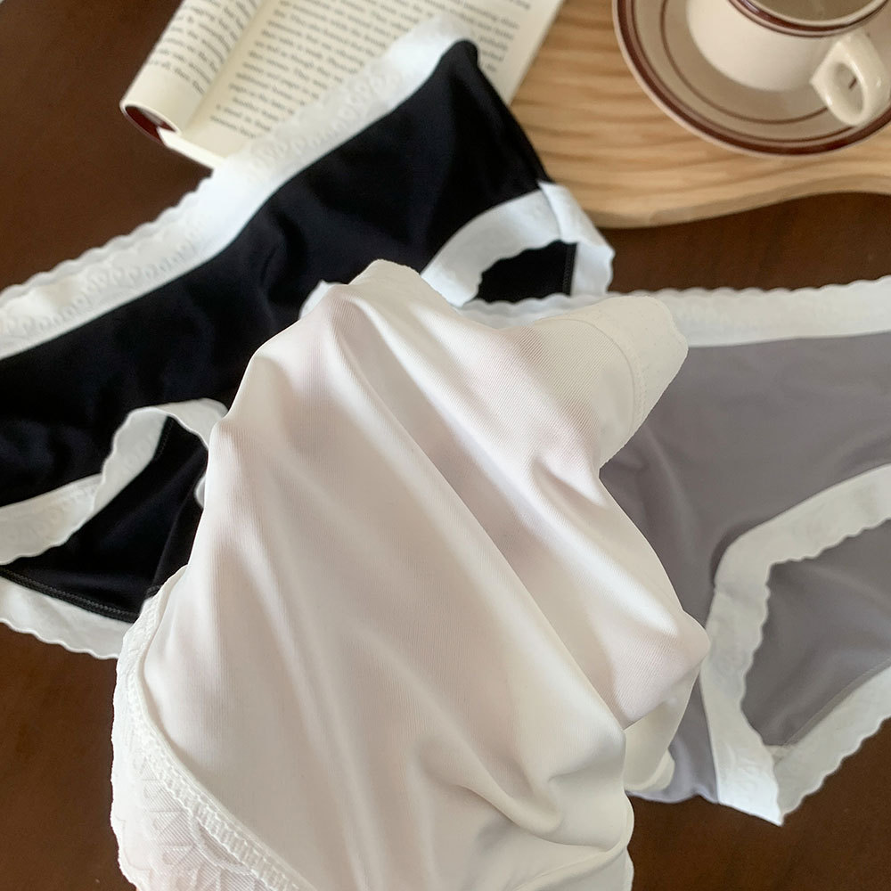 새로운 일본식 심리스 아이스 실크 심플 소녀 속옷 대비 색상 통기성 누드 느낌 중간 허리 여름 순수 코튼 가랑이 속옷 여성용스토어 가기