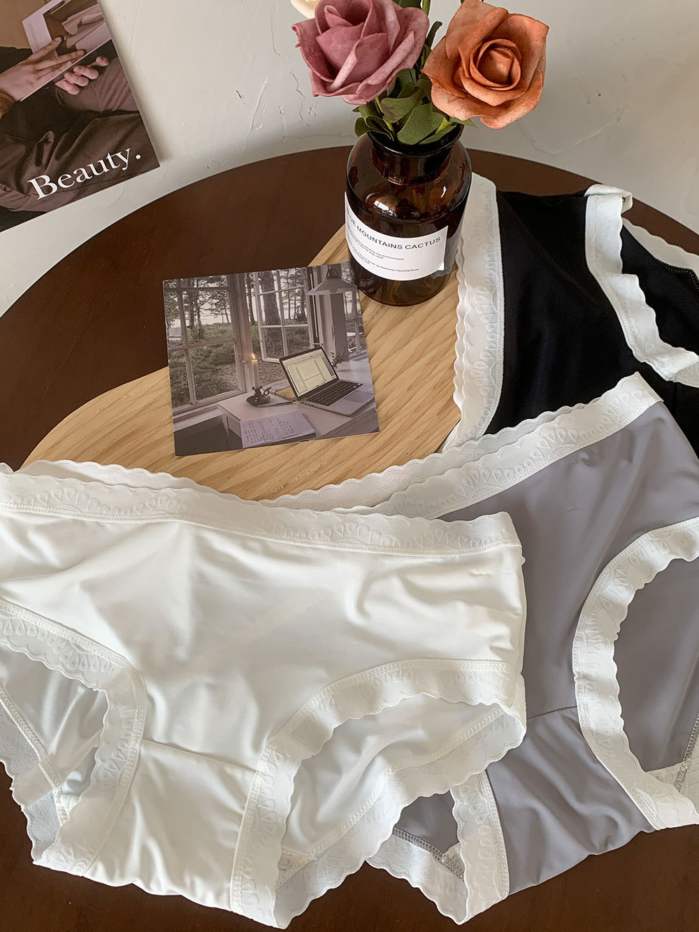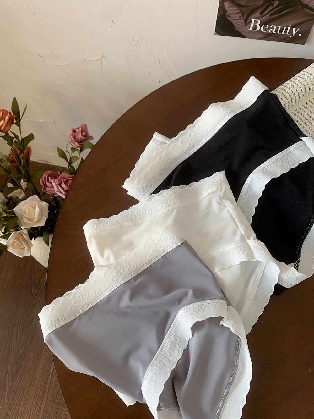 春野枝花~女生法式缎面镂空蕾丝纯欲风性感中腰内裤女新款内裤女