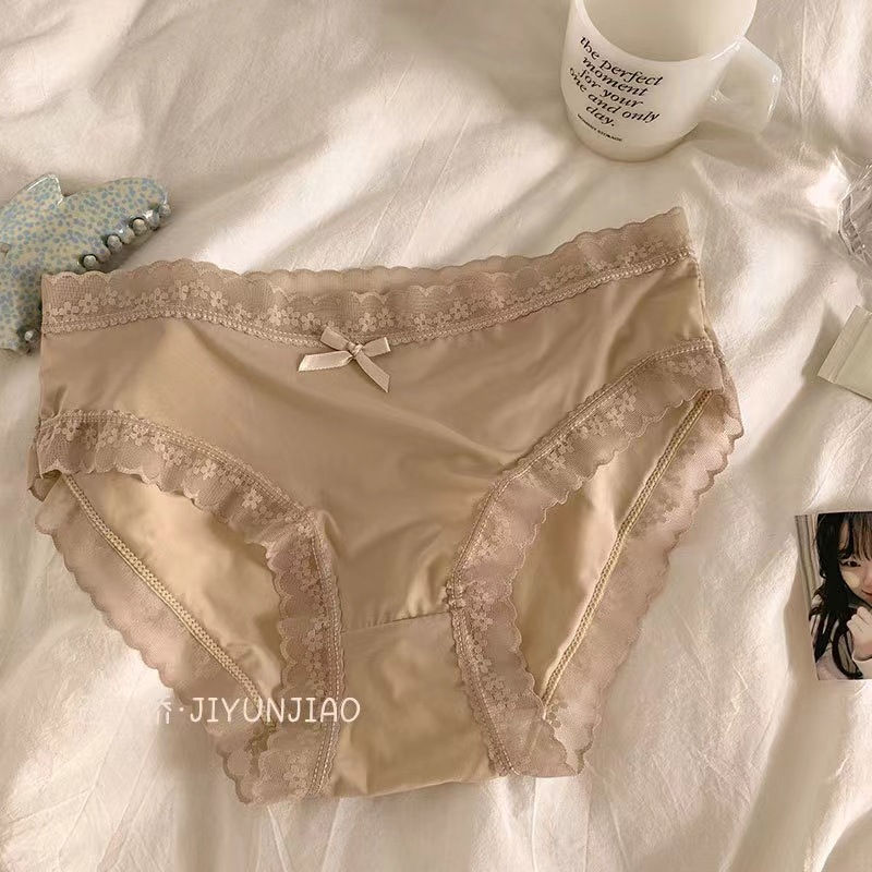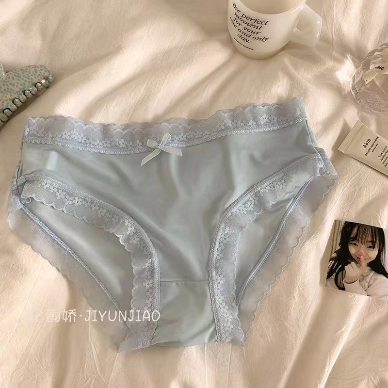空气面膜轻薄冰丝内裤女无痕蕾丝边少女内裤中腰女生内裤女