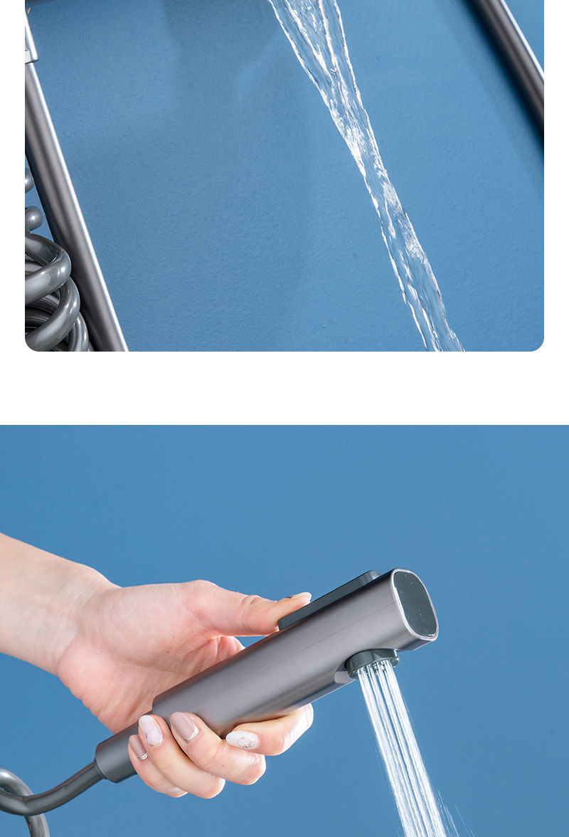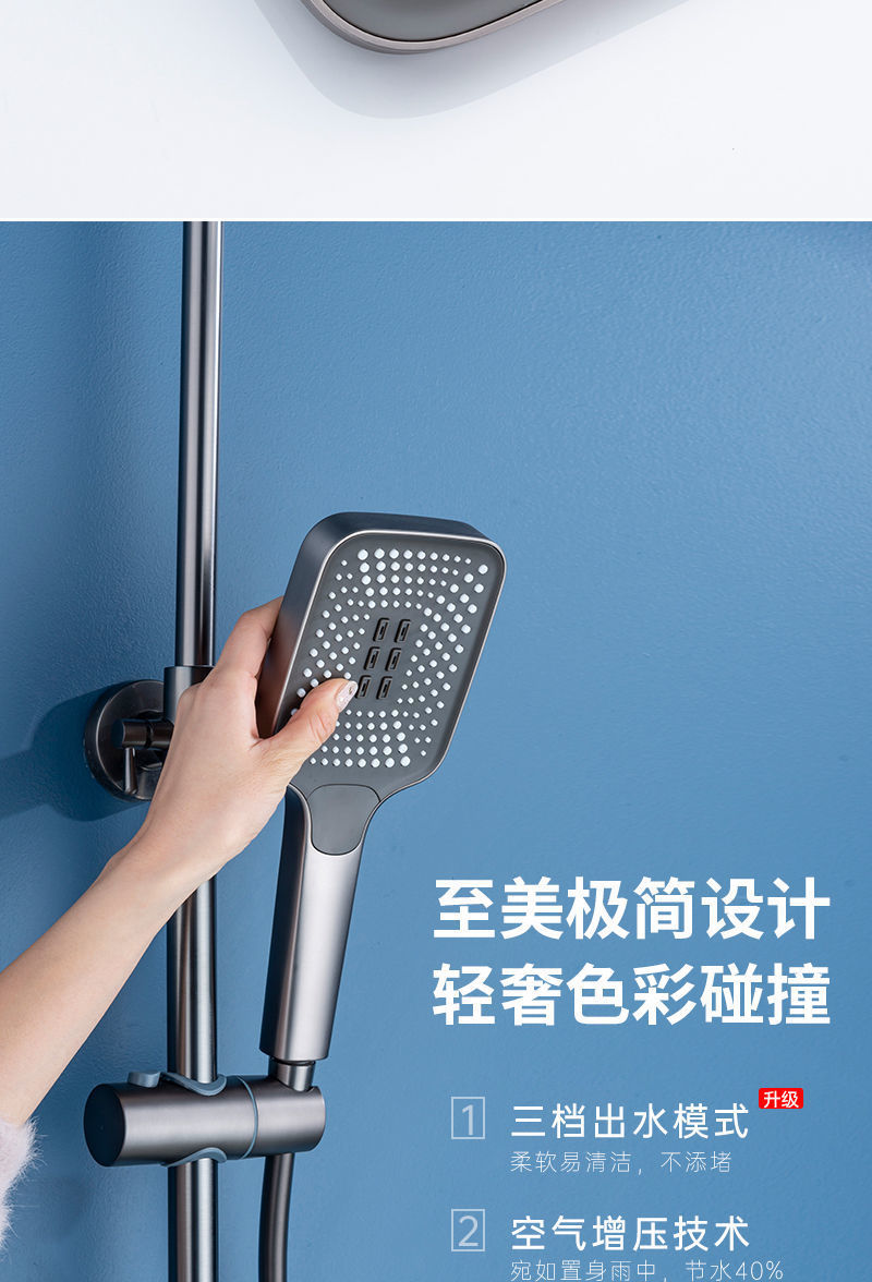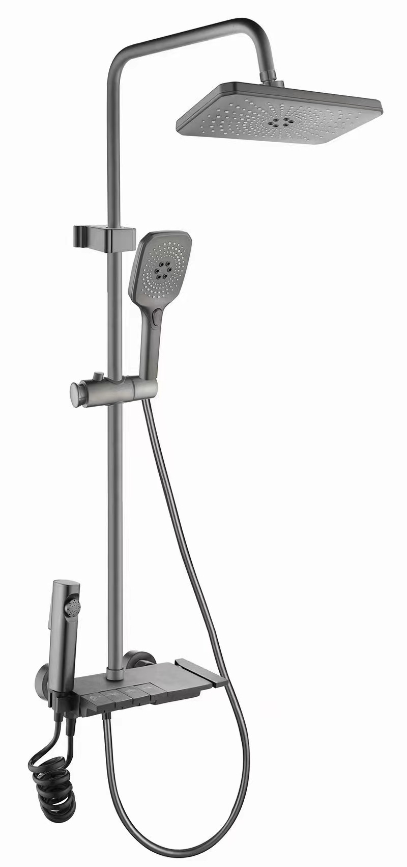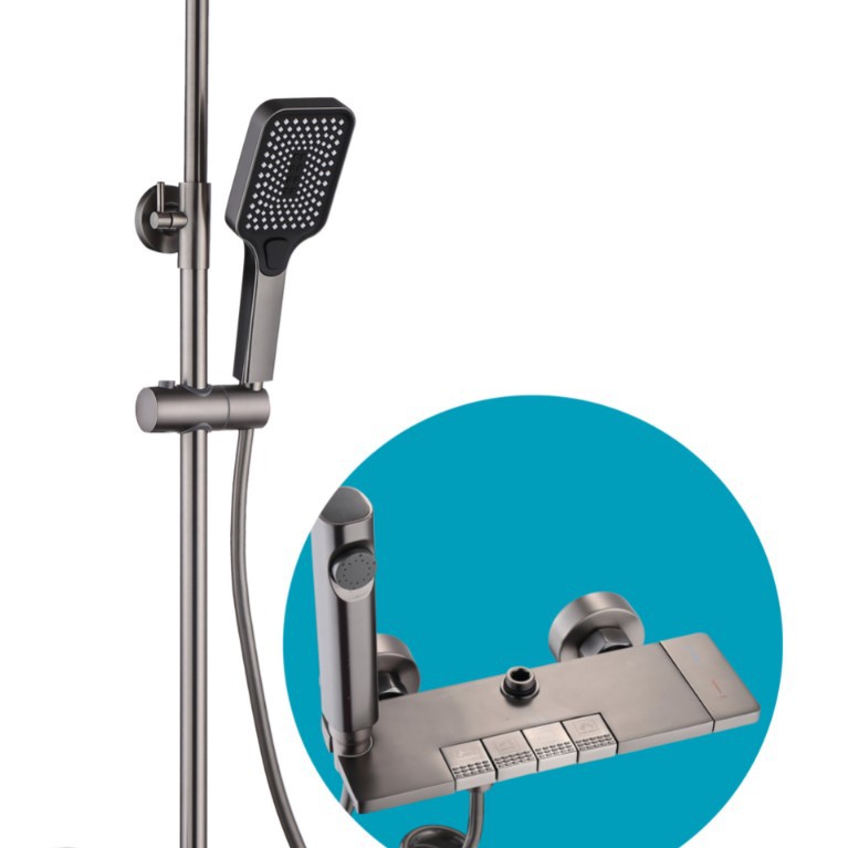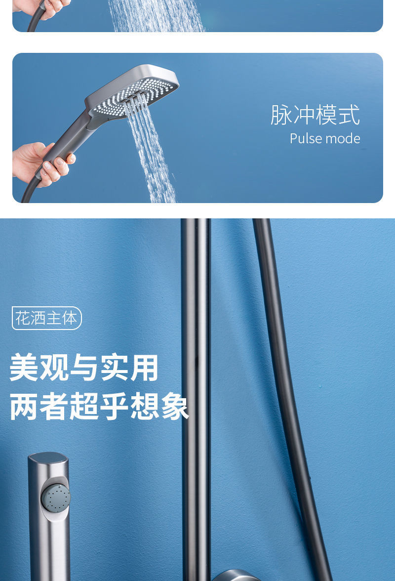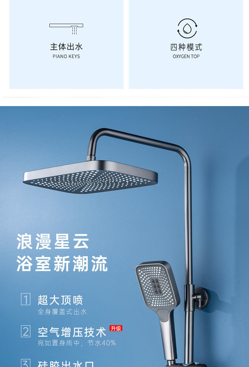 파이사 샤워 세트 가정용 욕실 과급 건 그레이 모든 구리 피아노 버튼 스마트 자동 온도 조절 샤워 헤드