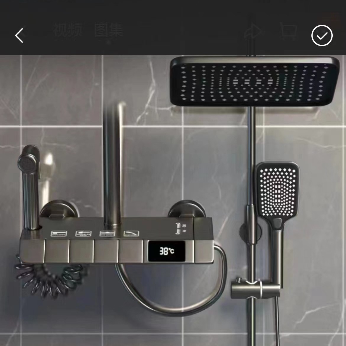 파이사 샤워 세트 가정용 욕실 과급 건 그레이 모든 구리 피아노 버튼 스마트 자동 온도 조절 샤워 헤드스토어 가기