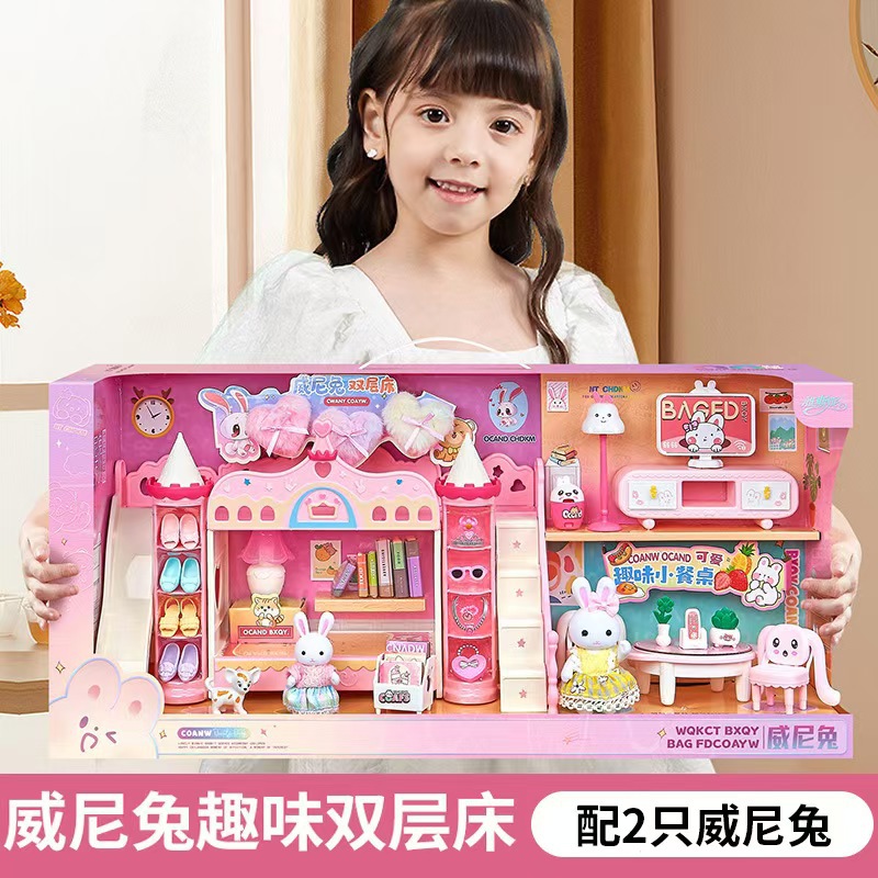Yasni 토끼 큰 성 별장 디저트 하우스 거실 침실 이층 침대 소녀 놀이 집 어린이 장난감