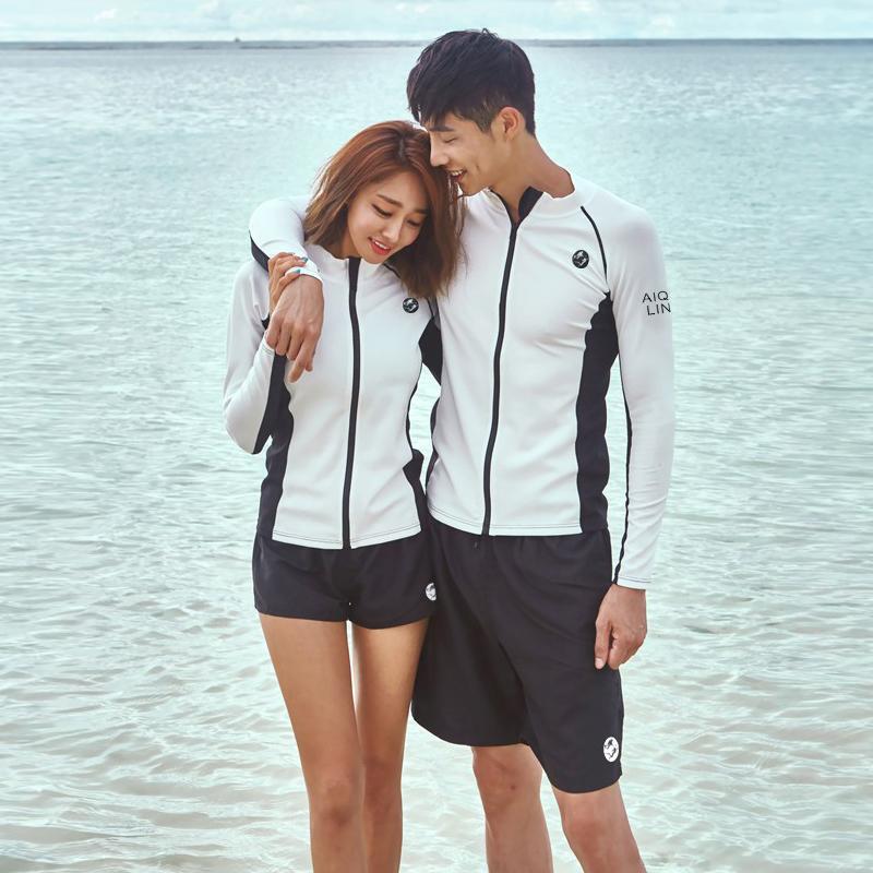 커플 전신 수영복 남자의 여름 다이빙 세트 여자의 긴 소매 자외선 차단제 분할 스노클링 서퍼 세트 수영 해파리 세트스토어 가기