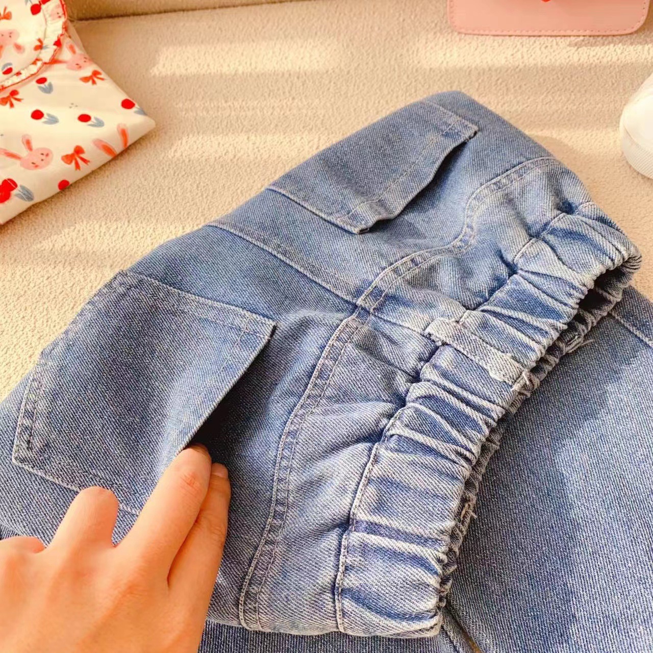 2025 봄, 가을 옷 아기 소녀 구슬 세탁 플레어 스트레치 청바지 가을 새로운 바지스토어 가기