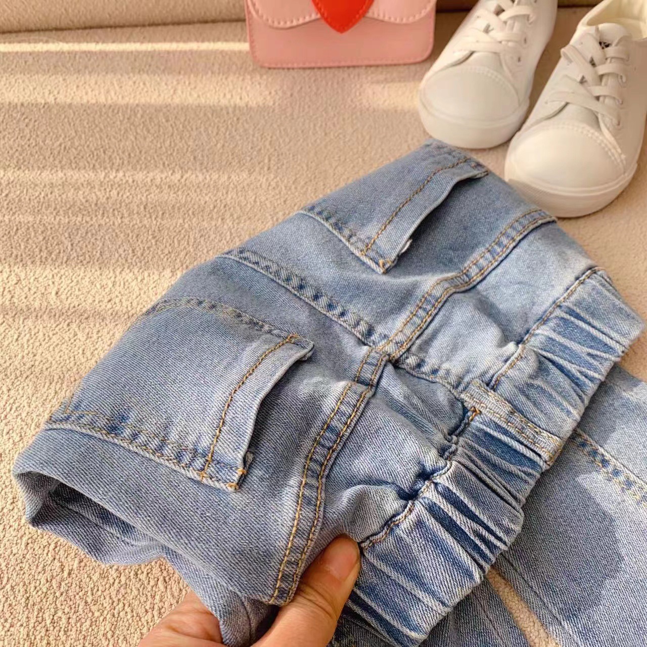 2025 봄, 가을 옷 아기 소녀 구슬 세탁 플레어 스트레치 청바지 가을 새로운 바지