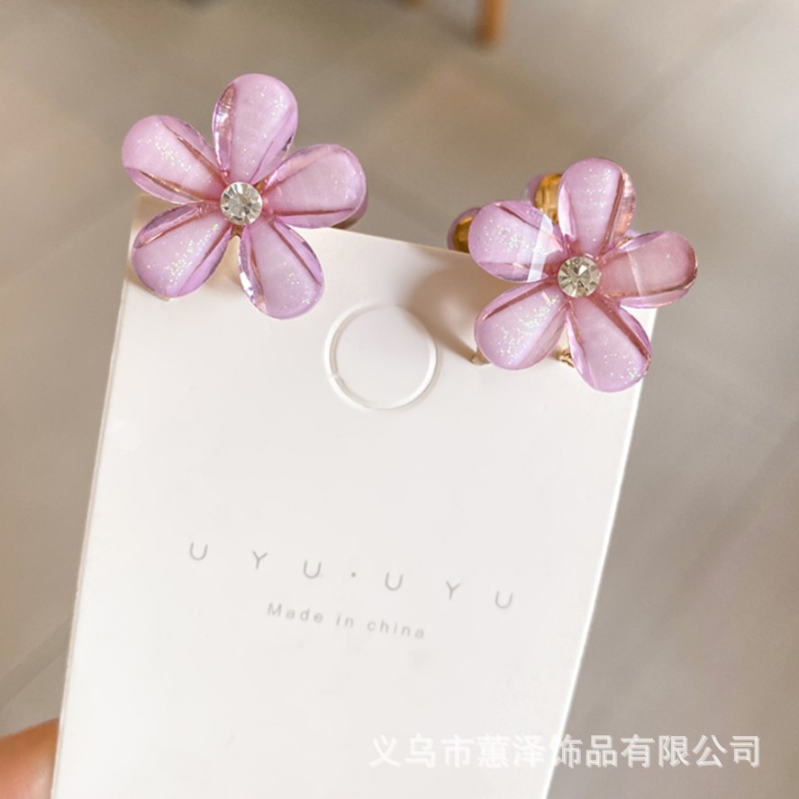 • 크리스탈 꽃 합금 작은 잡아 클립 (보라색)