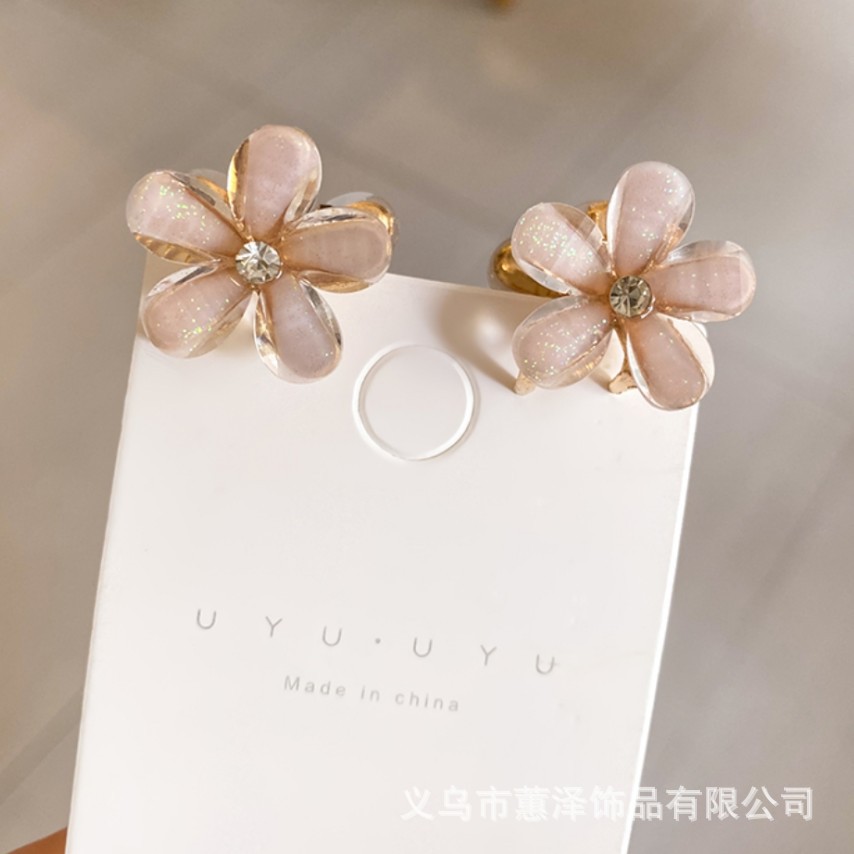 • 크리스탈 꽃 합금 작은 잡아 클립 (핑크)