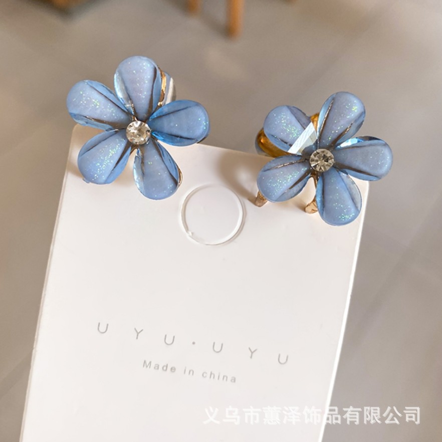• 크리스탈 꽃 합금 작은 잡아 클립 (파란색)