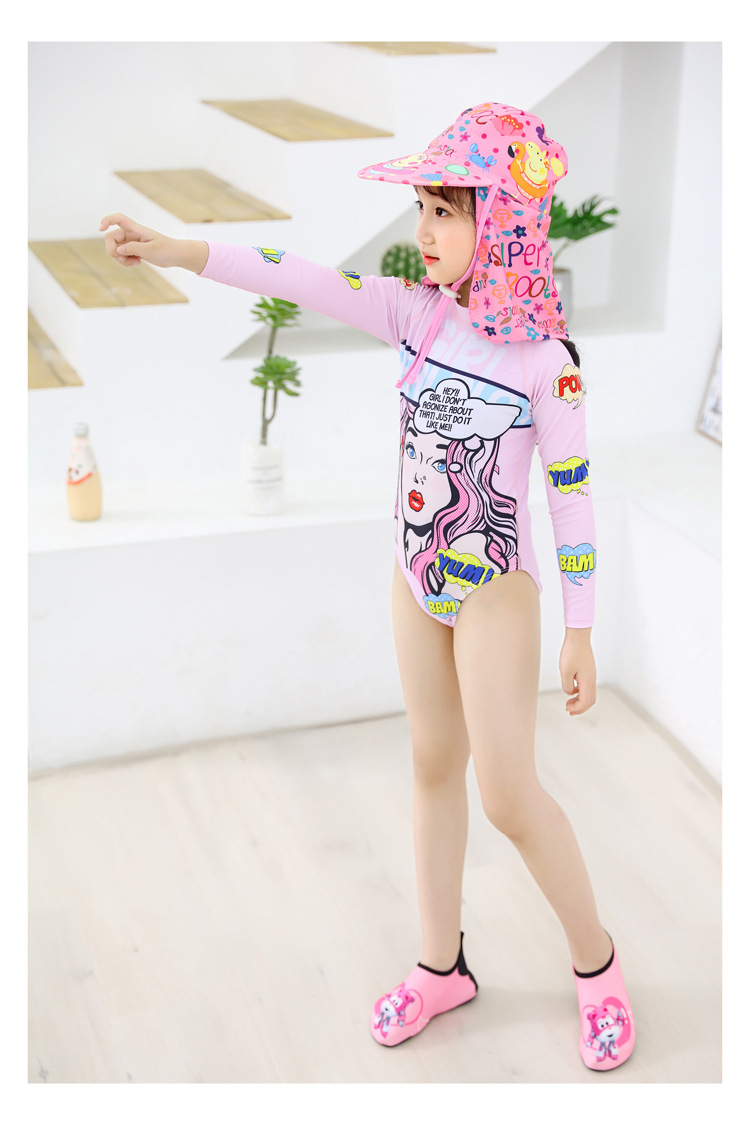어린이 수영복 원피스 삼각형 긴 소매 소녀 중소 어린이 달콤한 귀여운 핑크 부모-자식 의류 도매 수영 세트
