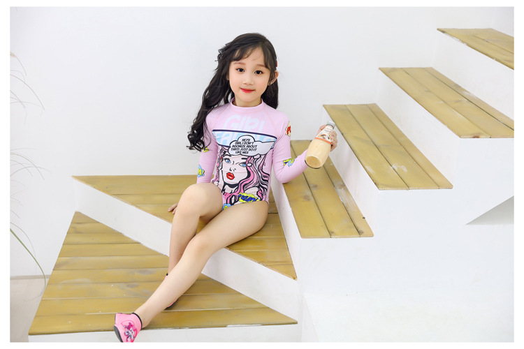 어린이 수영복 원피스 삼각형 긴 소매 소녀 중소 어린이 달콤한 귀여운 핑크 부모-자식 의류 도매 수영 세트스토어 가기