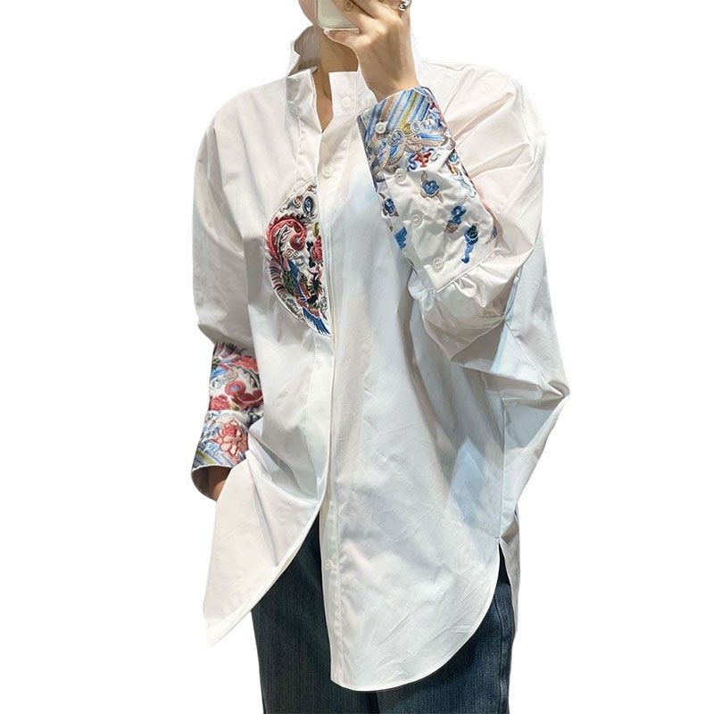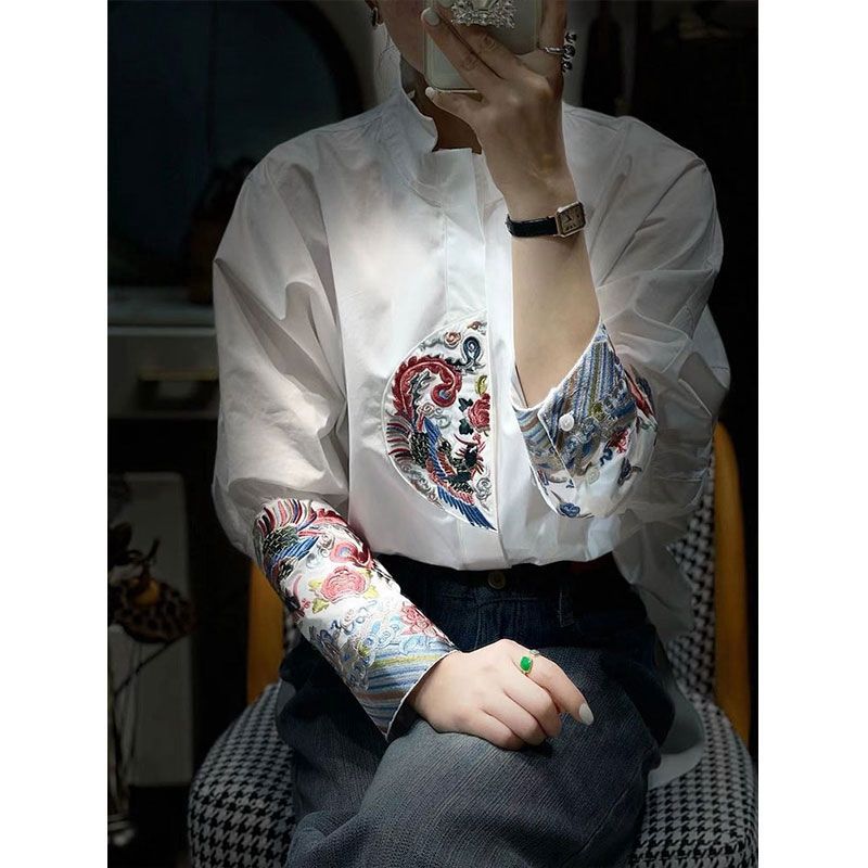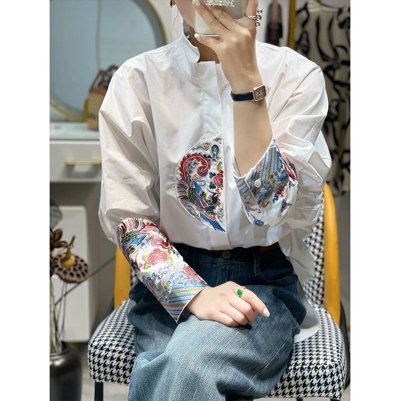 이른 봄 프랑스 독특한 시크 탑 슈퍼 외국 유럽 상품 중공업 셔츠 중국 자수 셔츠 여성의 2023 새로운 스타일스토어 가기