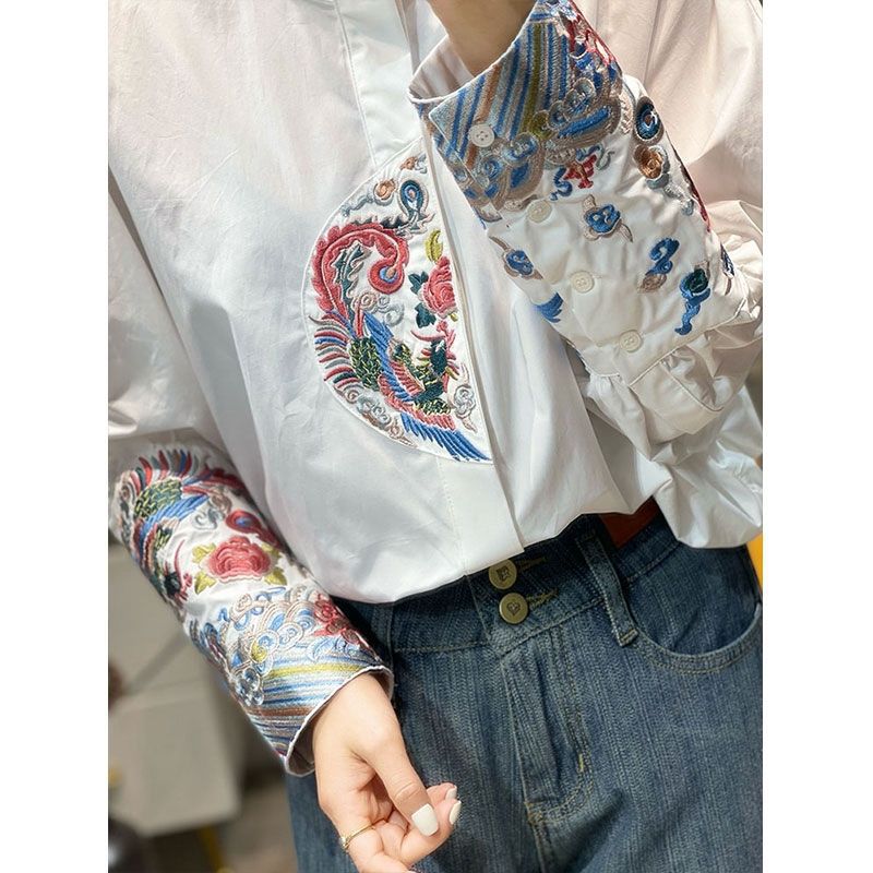 이른 봄 프랑스 독특한 시크 탑 슈퍼 외국 유럽 상품 중공업 셔츠 중국 자수 셔츠 여성의 2023 새로운 스타일