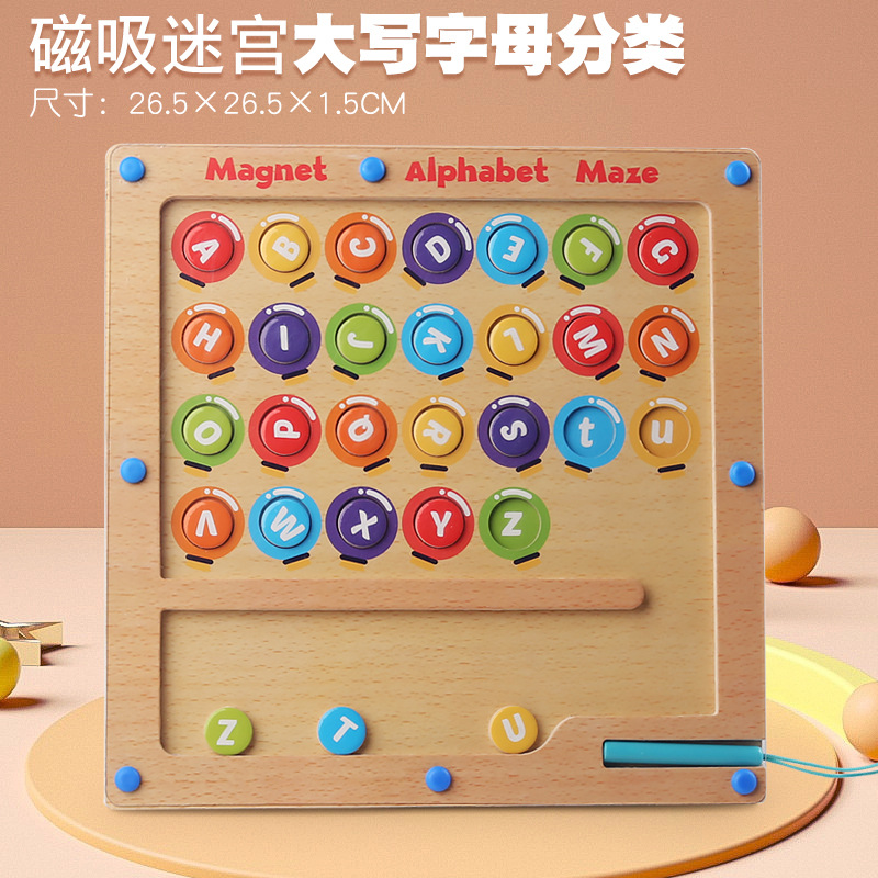 CX-磁性大写字母迷宫:产品尺寸:27.5*27.5*2.3cm 0.55KG 装箱数:40个 外箱尺寸: 48.5*29*57CM 毛/净重:23/22KG