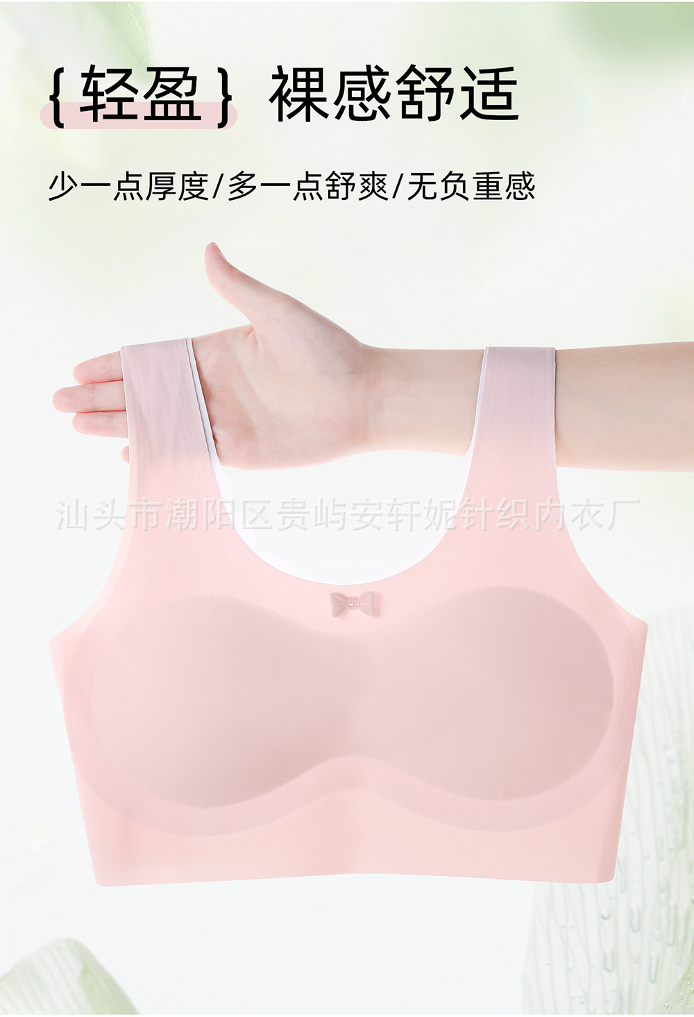 여아용 스포츠 고정컵 브라, 중학생 및 고등학생 여학생 발달기용 소형 조끼형 무봉제 아이스 실크 브라, 얇은 브라스토어 가기