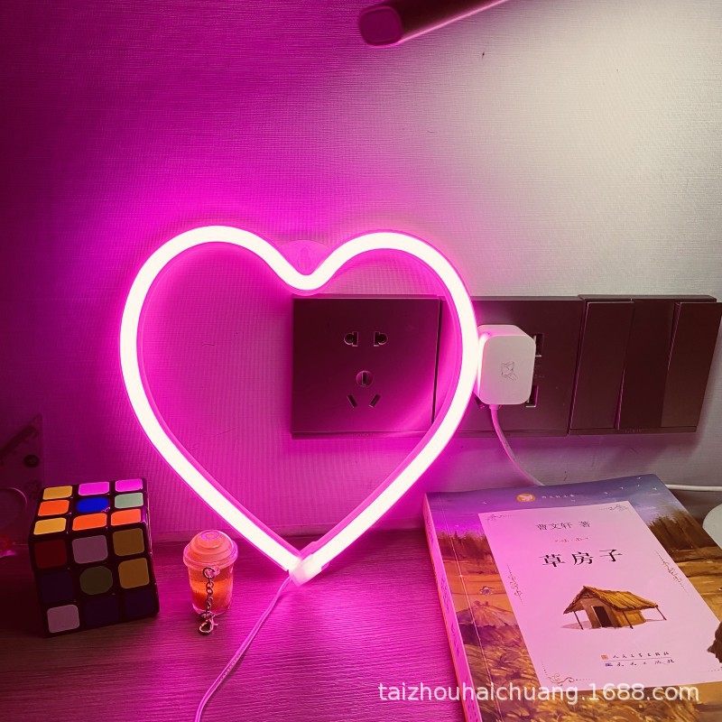 여름 핑크 작은 사랑 LED 네온 발렌타인 데이 프로포즈 활동 레이아웃 펜던트 in 바람 야간 조명스토어 가기