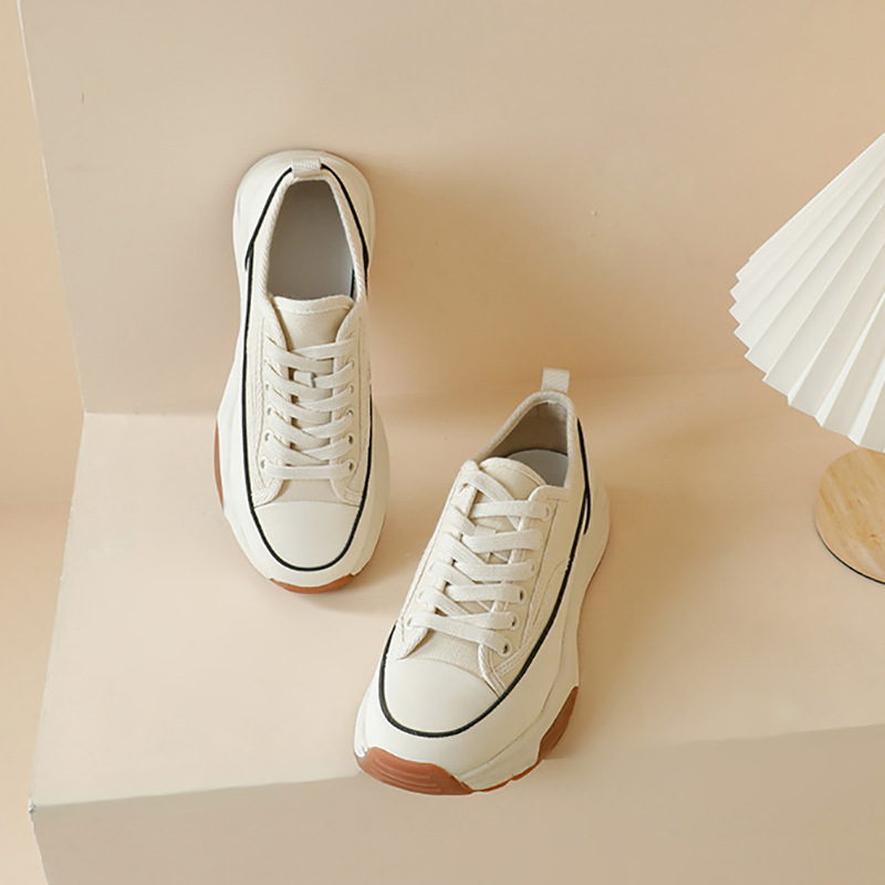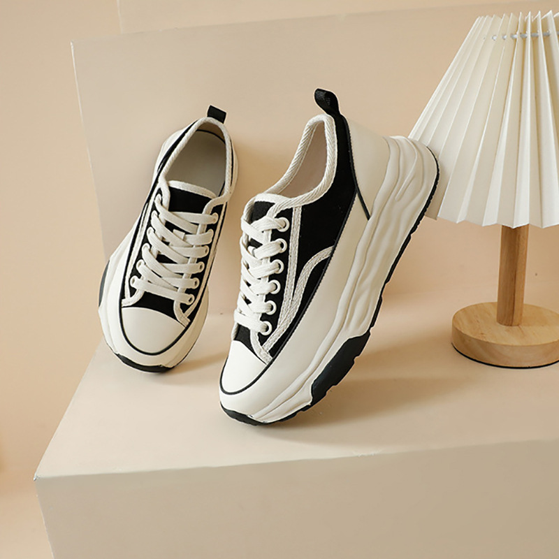 캔버스 신발 여성용 두꺼운 밑창 포레스트 검프 슈즈 샤넬 스타일 여성 신발 2023 새로운 봄 가을 레저 스포츠 흰색 신발 플랫폼