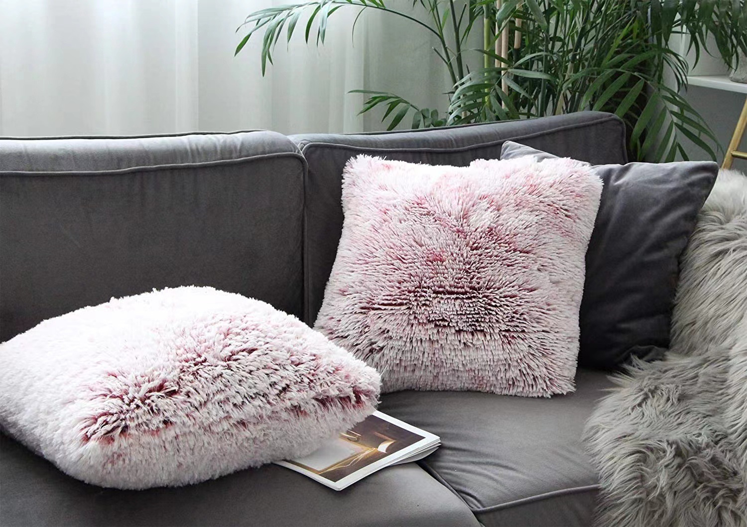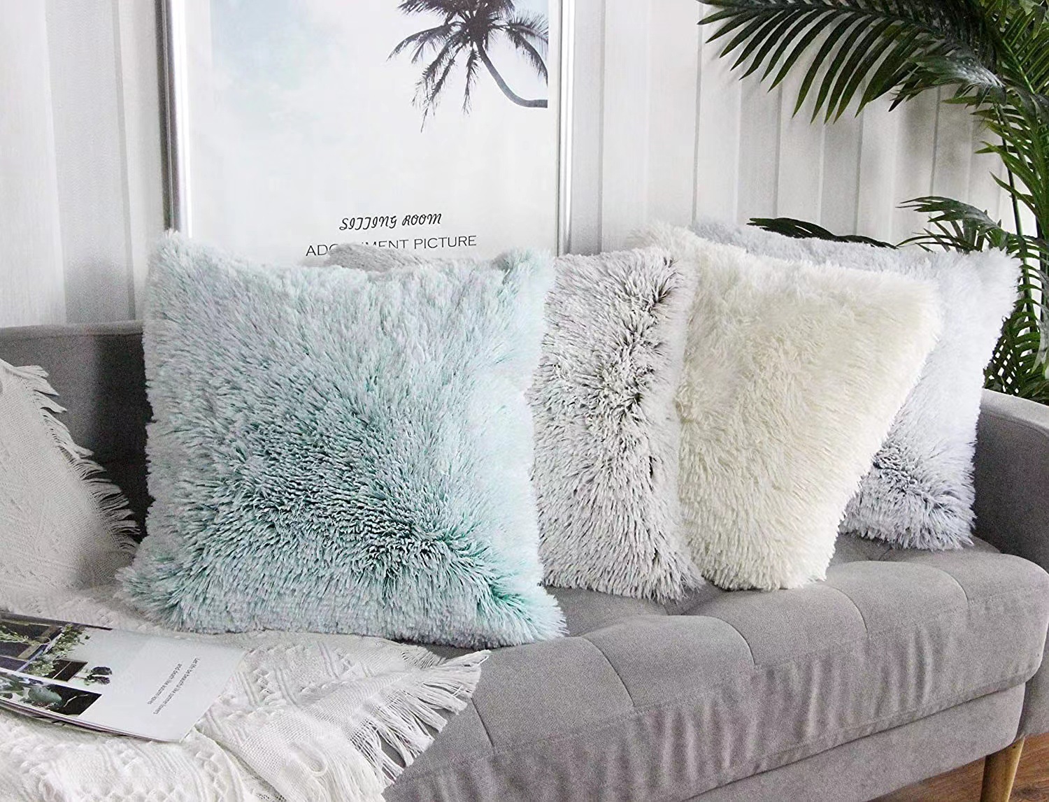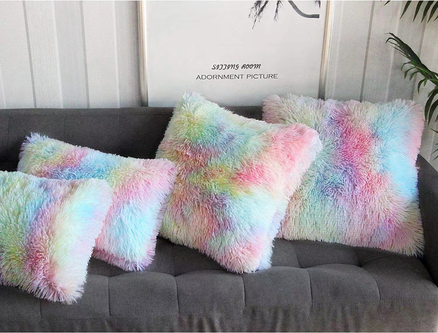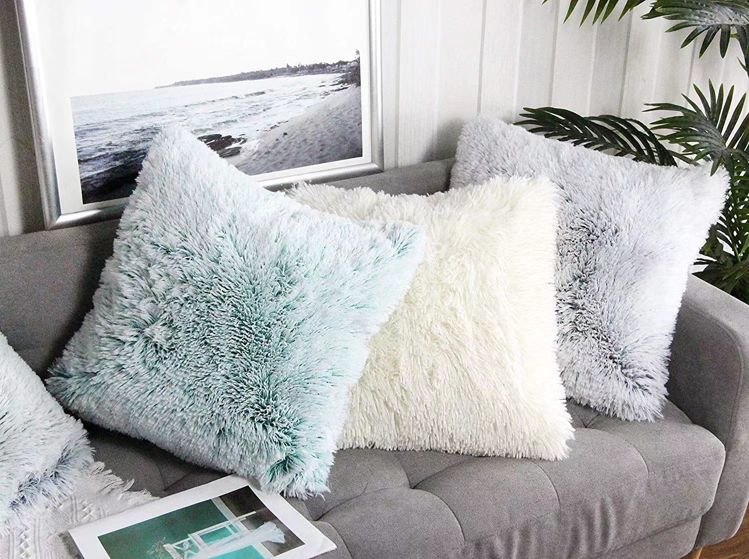 아마존 퀼트 소파 베개 침대 옆 베개 봉제 그라디언트 베개 케이스 플러시 자동차 허리 베개