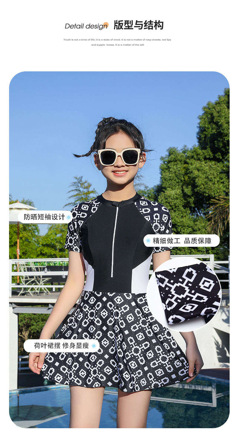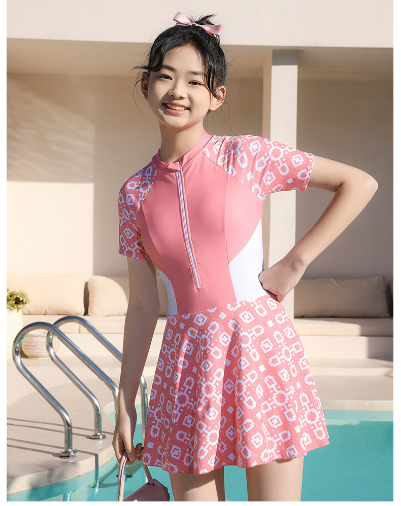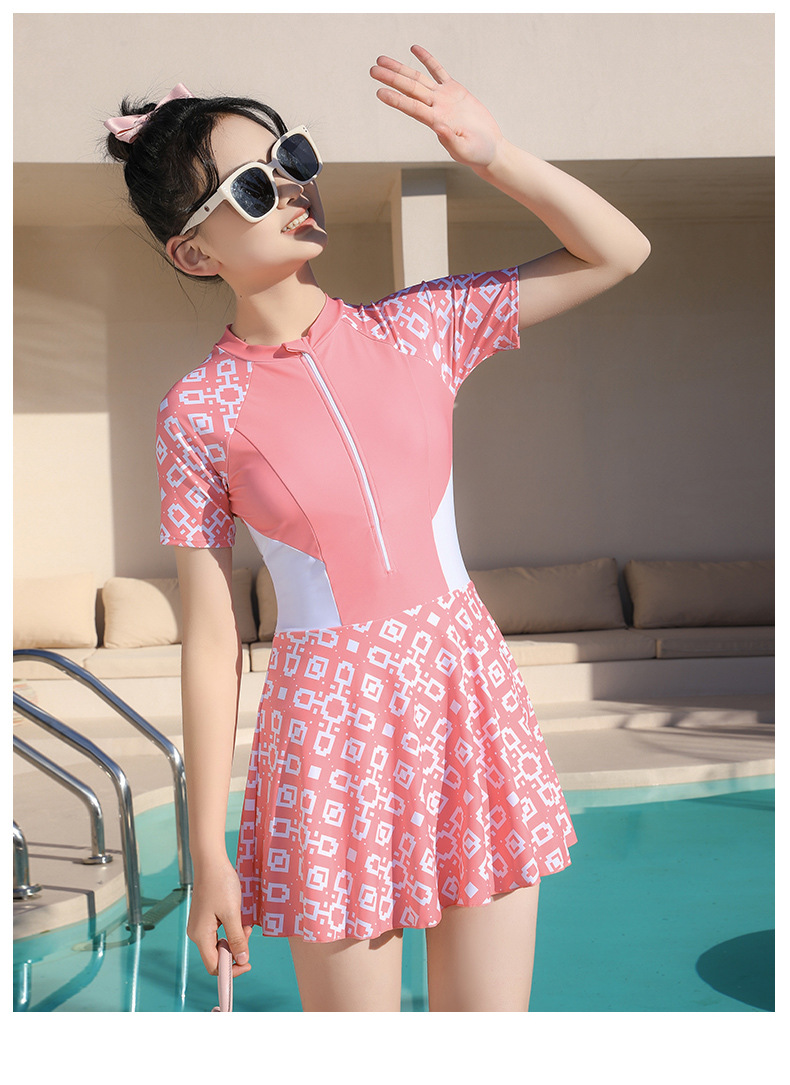 여아를 위한 원피스 스커트 수영복, 스포츠 스타일 호리쿠시마 수영복, 귀엽고 여성스러운 통기성 속건 수영복