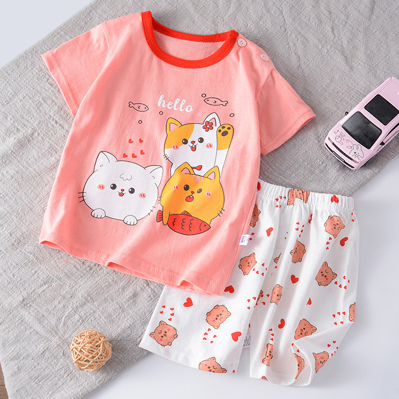 어린이 반팔 세트 여름 새 소년 반바지 여름 면 옷 소녀 한국 아동 의류 얇은 도매