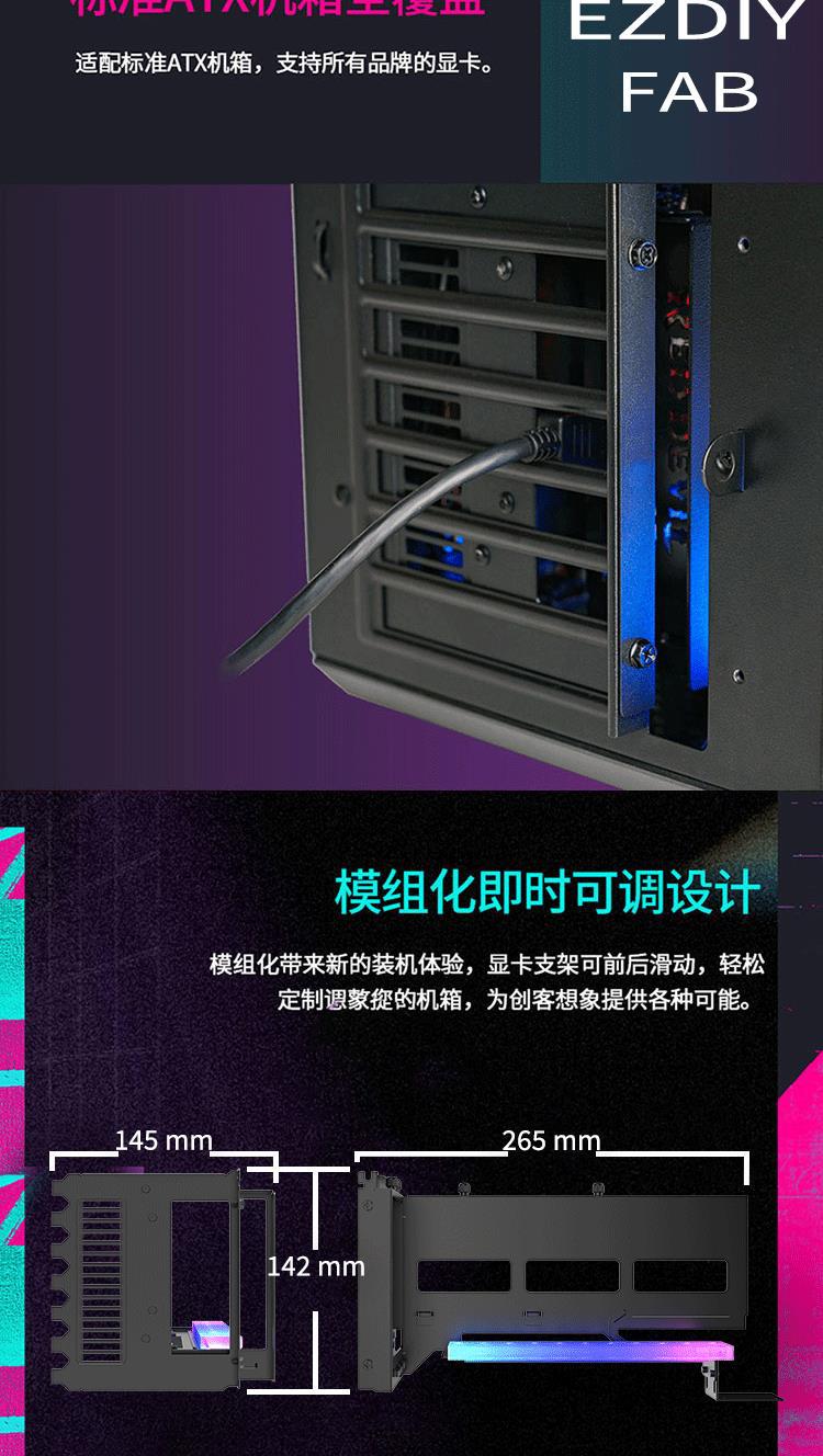 EZDIY-FAB GPU 그래픽 카드 스티어링 브래킷 PCI-E4.0 확장 케이블 그래픽 카드 수직 90 도 설치