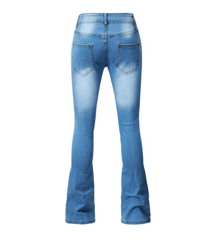 크로스 보더 유럽과 미국 북미 여성 청바지 타이트 스트레치 프린지 플레어 팬츠 여성 바지 바지 단색 청바지 여성
