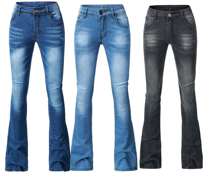 크로스 보더 유럽과 미국 북미 여성 청바지 타이트 스트레치 프린지 플레어 팬츠 여성 바지 바지 단색 청바지 여성스토어 가기