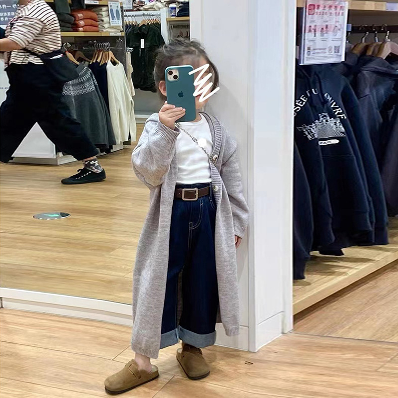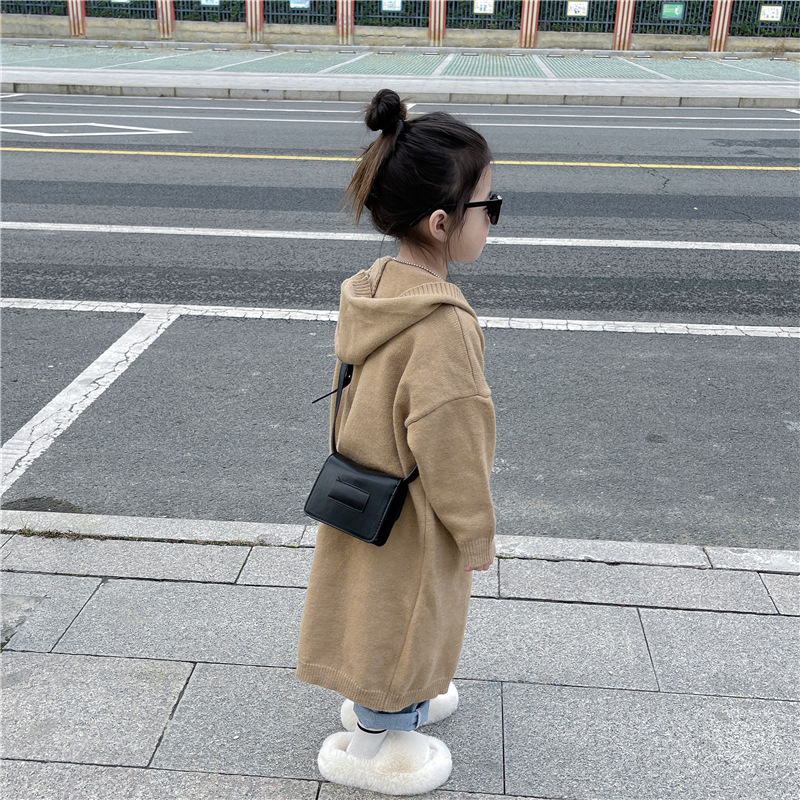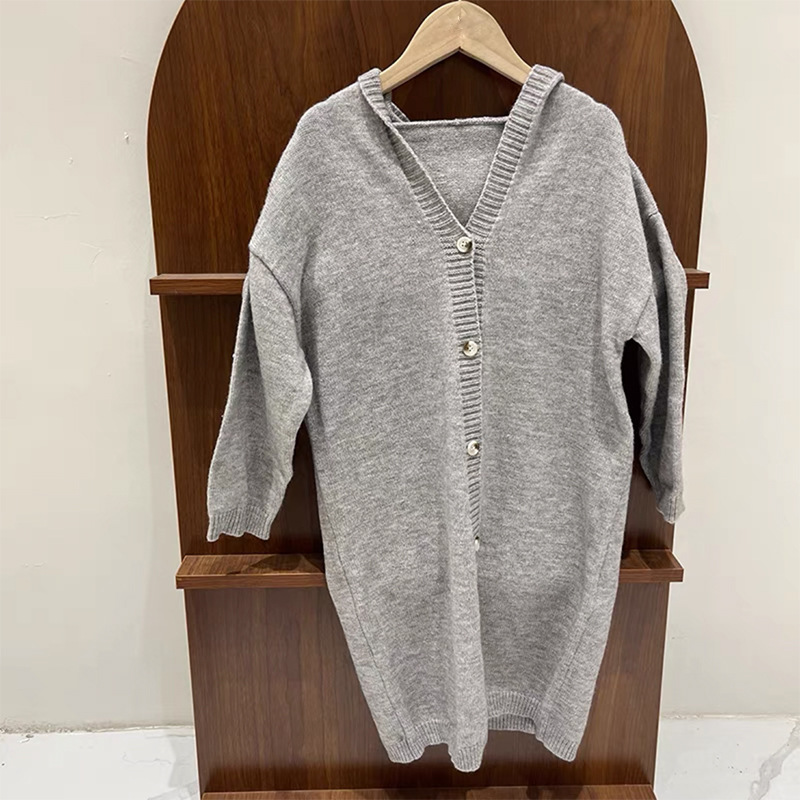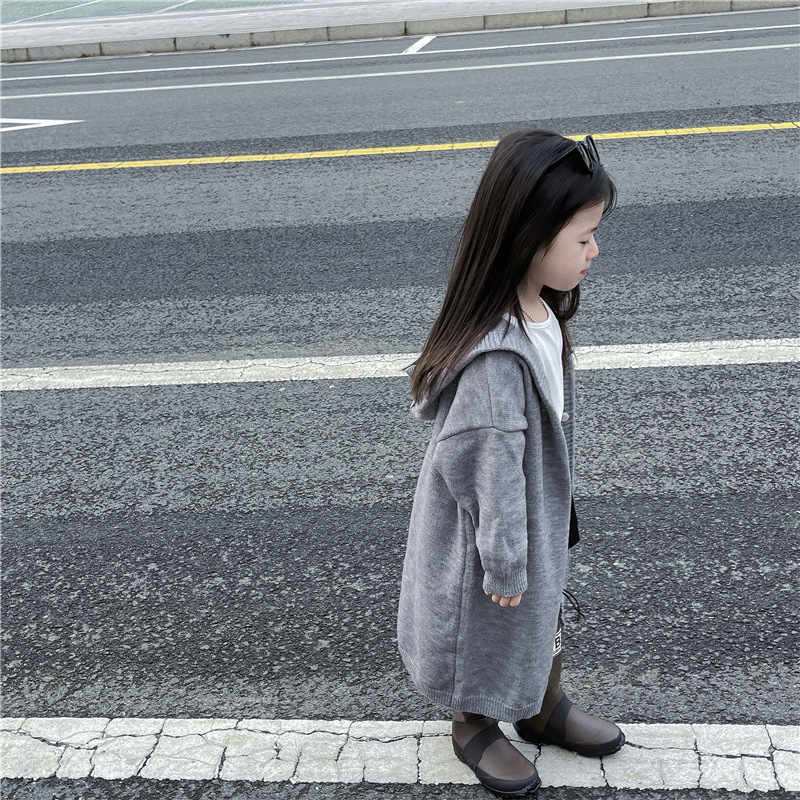 소녀의 봄과 가을 새로운 한국 스타일 유행 긴 싱글 브레스트 스웨터 재킷 게으른 스타일 올매치 니트 카디건