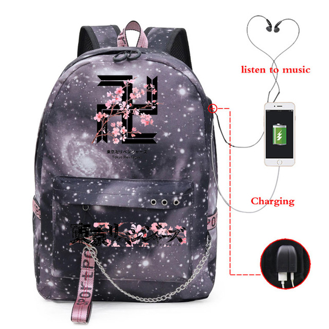 남성과 여성을위한 대용량 백팩 USB 컴퓨터 가방 여행 가방을 둘러싼 국경 간 직공급 도쿄 어벤져스