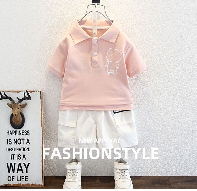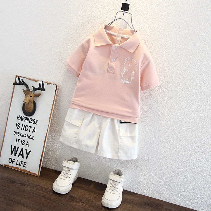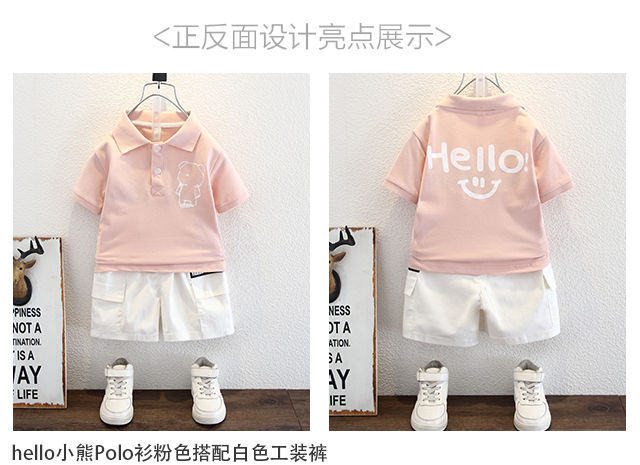 • 화이트 베어 안녕하세요 핑크 + 영어 바지 화이트