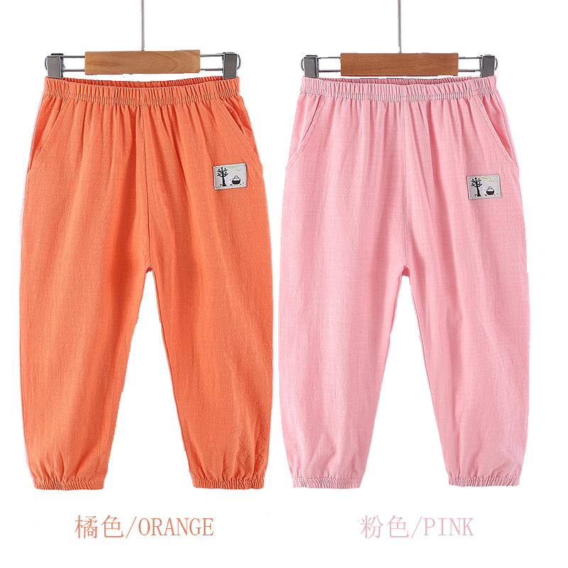 어린이 모기 방지 바지 면화 여름 얇은 느슨한 포켓 소년 소녀를위한 어린이 등불 바지 면화 및 리넨 캐주얼 바지스토어 가기