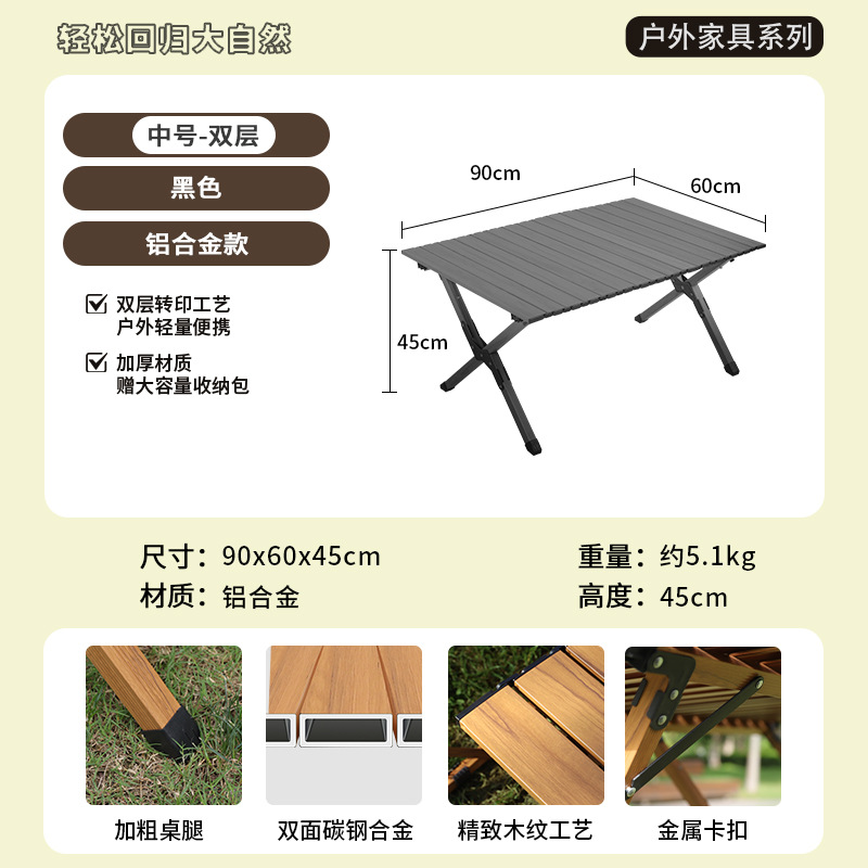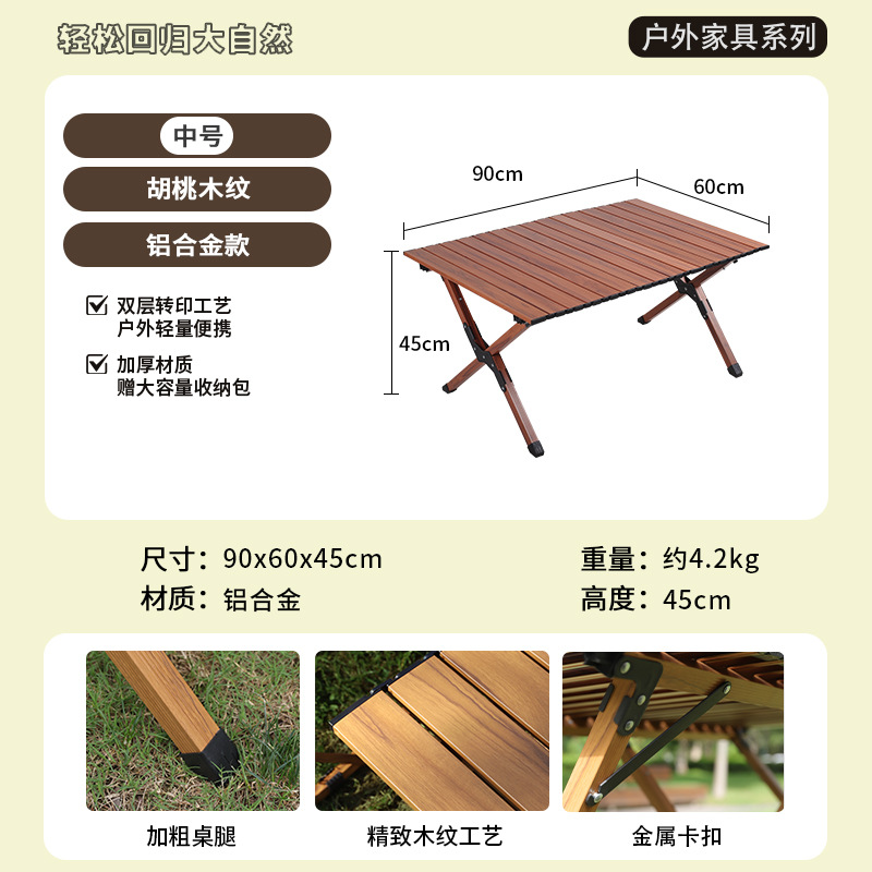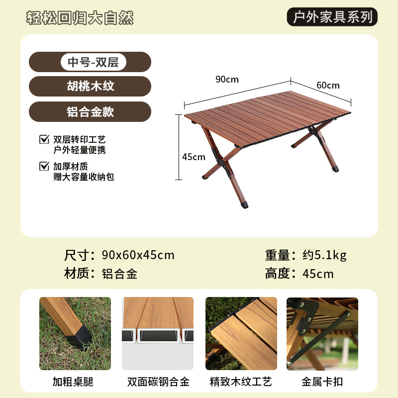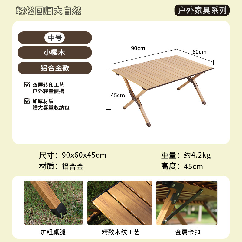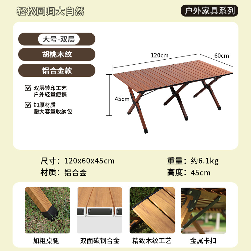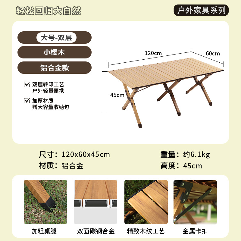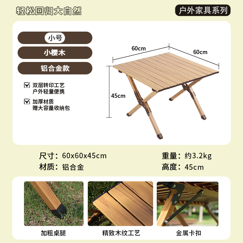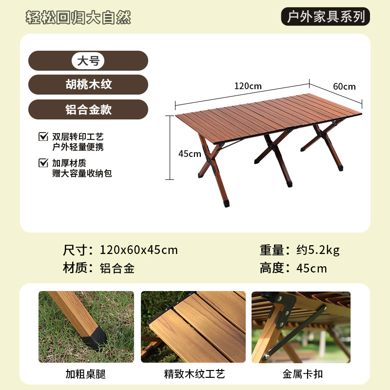 • 120*70*55cm 나뭇결 알루미늄 합금 계란말이 테이블
