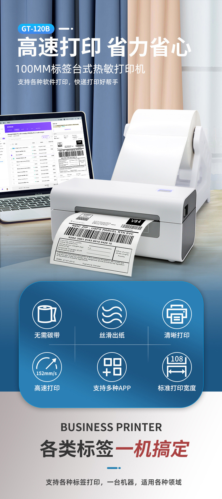 GT-P120 익스프레스 전자 표면 단일 라벨 프린터 접착제 eyoubao 상점 물류 라벨링 기계