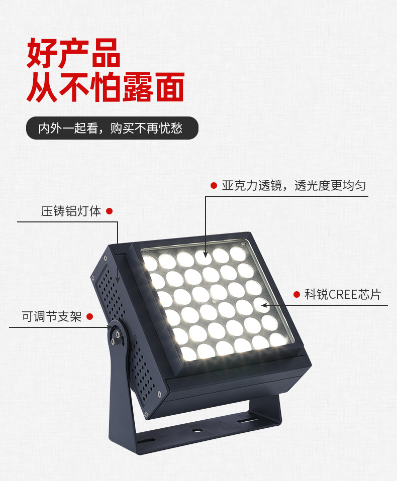 LED 7색 투광등 야외 방수 공원 조명 정원 광장 RGB 투광등 36-150W 리모컨
