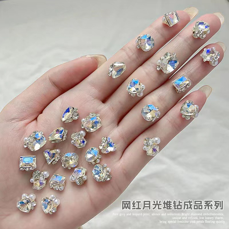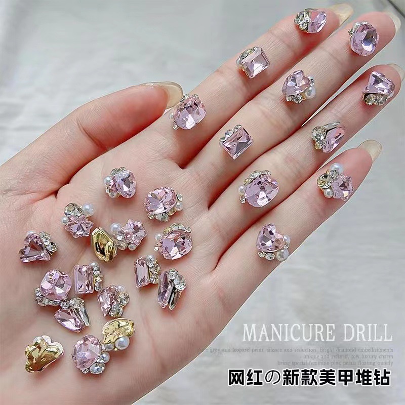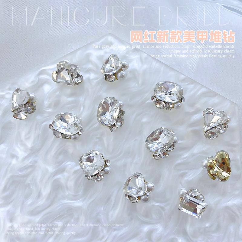 네일아트 장식품, 새로운 디자인의 왜곡형 사각 다이아몬드, 매우 반짝이는 도끼 모양 하트 네일 다이아몬드, 인터넷에서 인기 있는 상품스토어 가기