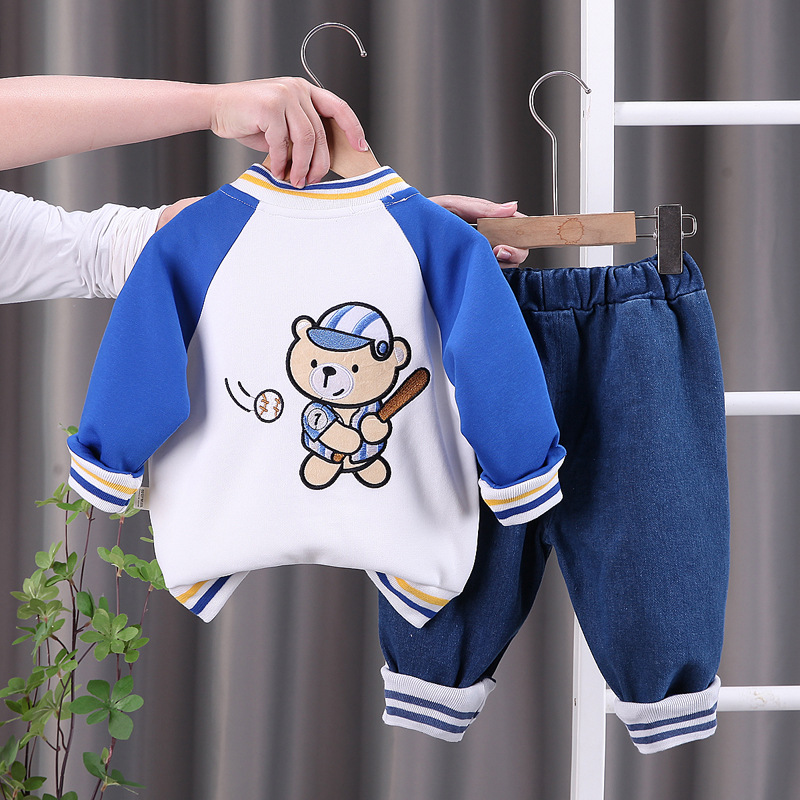 소년 '봄과 가을 옷 야구 옷 세트 서양 스타일 어린이 인터넷 인기 0-5 세 소녀 아기 옷 긴 소매 유행 어린이 옷스토어 가기